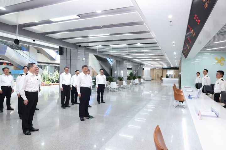 10月15日至16日,中共中央總書記、國家主席、中央軍委主席習近平在福建考察。這是16日上午,習近平在中國(福建)自由貿易試驗區廈門片區考察時,同綜合服務大廳現場工作人員親切交流。新華社記者 鞠鵬 攝