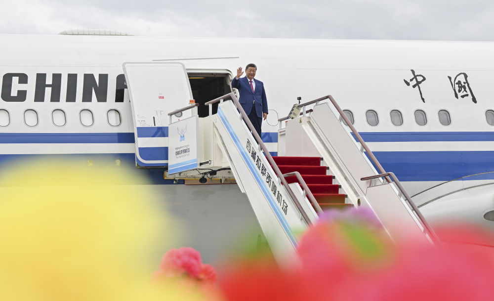 8月20日中午,中共中央總書(shū)記、國(guó)家主席、中央軍委主席習(xí)近平率中央代表團(tuán)乘專(zhuān)機(jī)抵達(dá)拉薩,出席西藏自治區(qū)成立60周年慶祝活動(dòng)。這是習(xí)近平走出艙門(mén),向歡迎群眾揮手致意。新華社記者 殷博古 攝