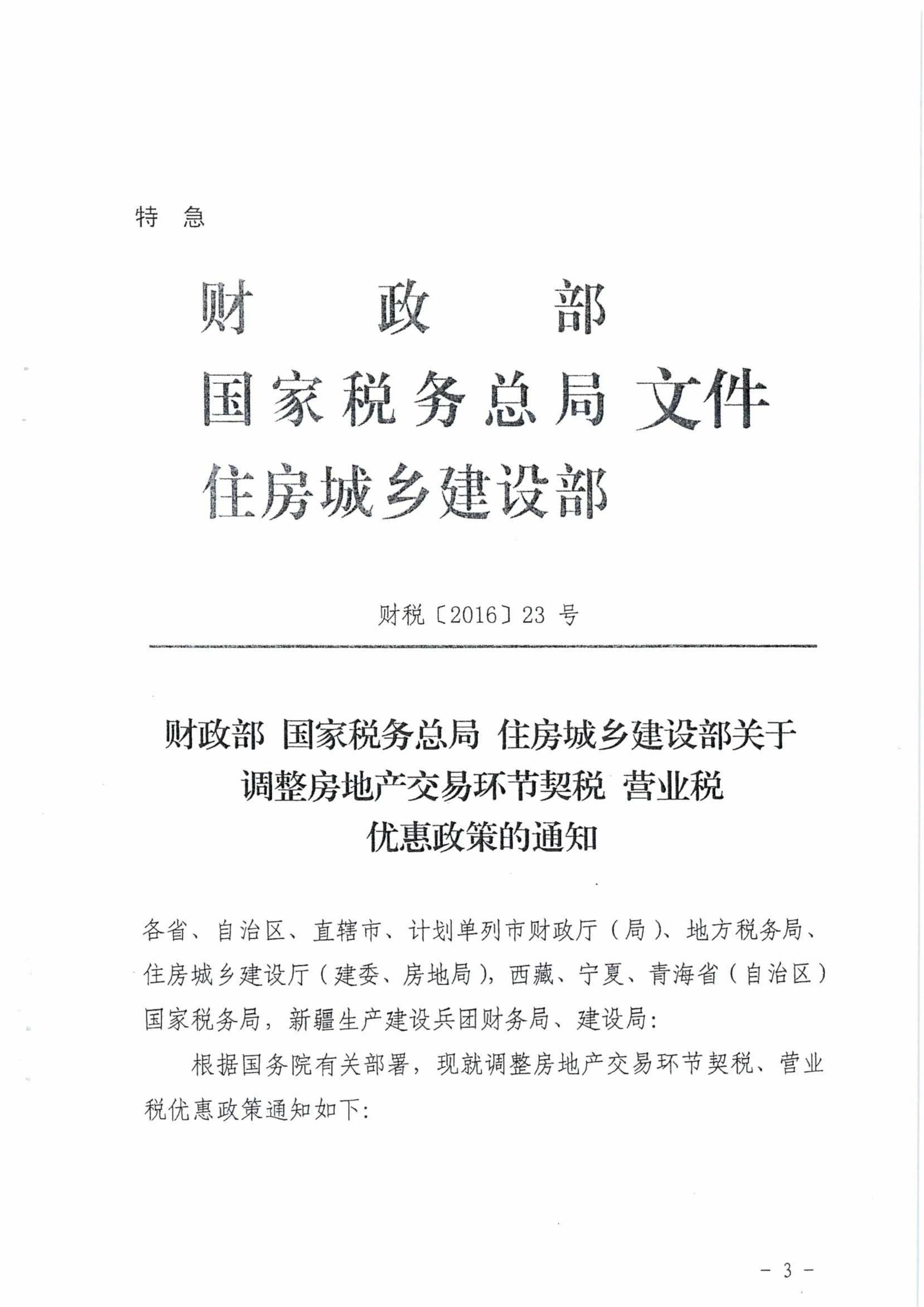 轉發(fā)財政部 國家稅務總局 住房城鄉(xiāng)建設部關于調整房地產交易環(huán)節(jié)契稅 營業(yè)稅優(yōu)惠政策的通知