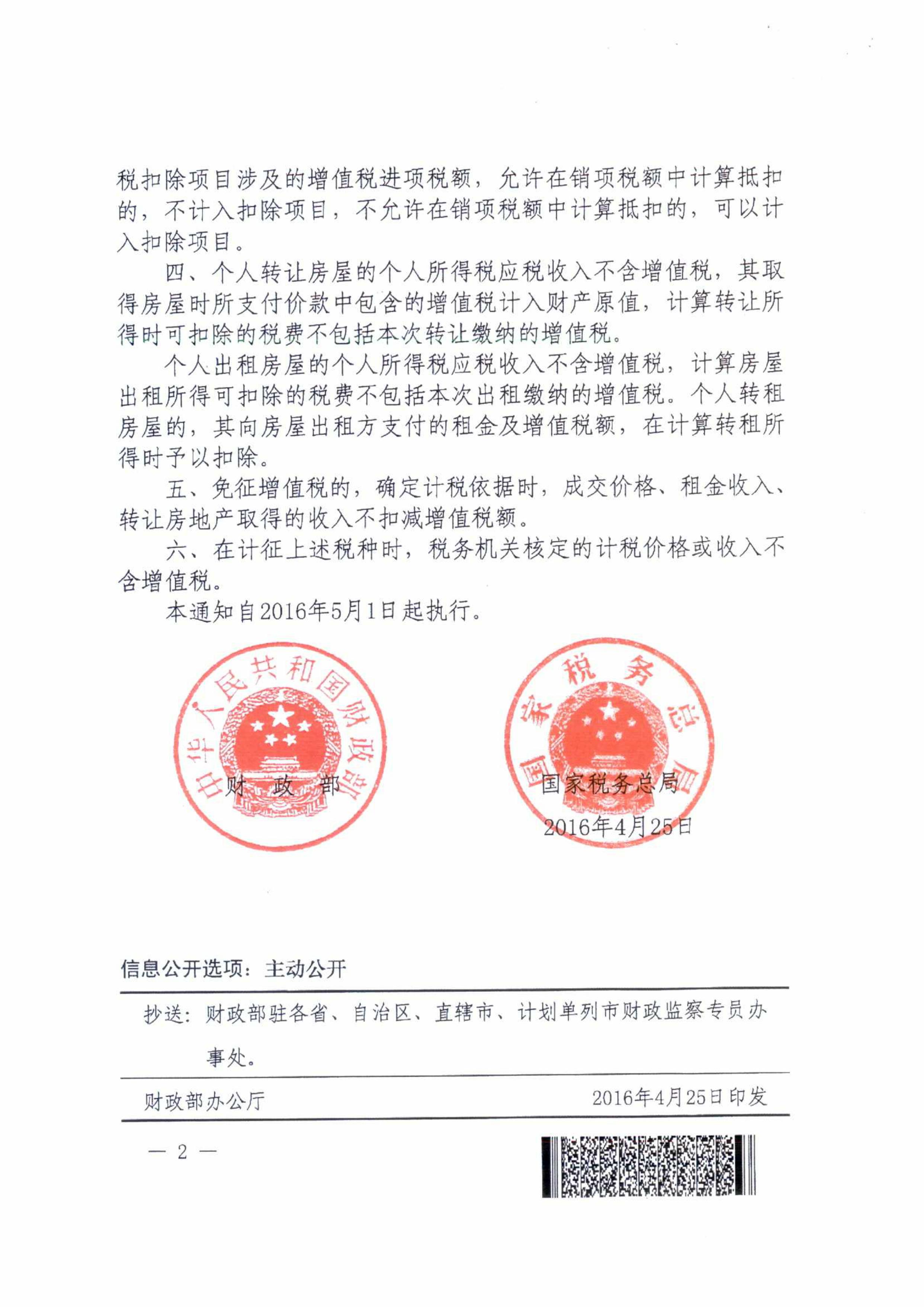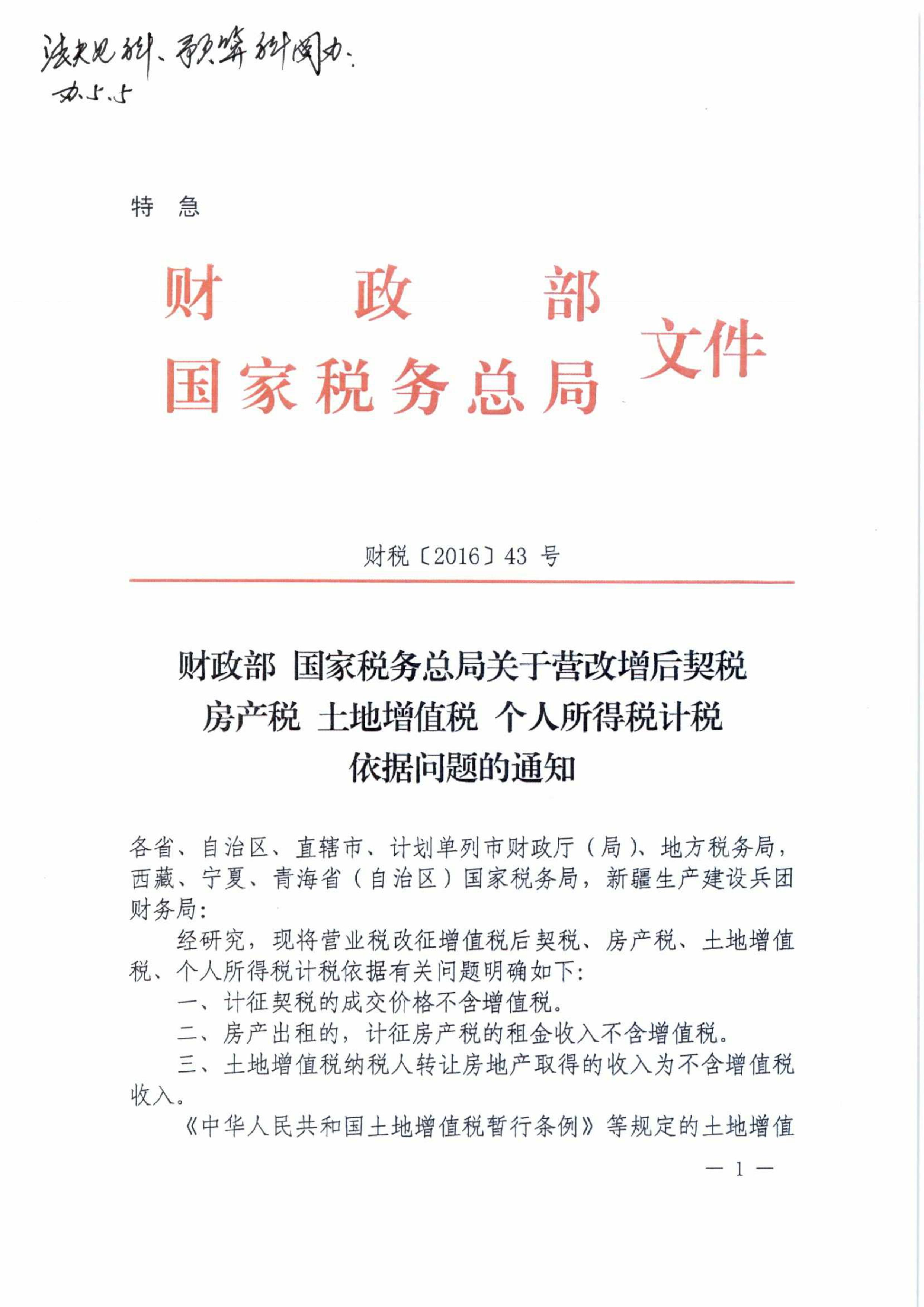 附件:財政部 國家稅務總局關于營改增后契稅 房產稅 土地增值稅 個人所得稅計稅依據問題的通知