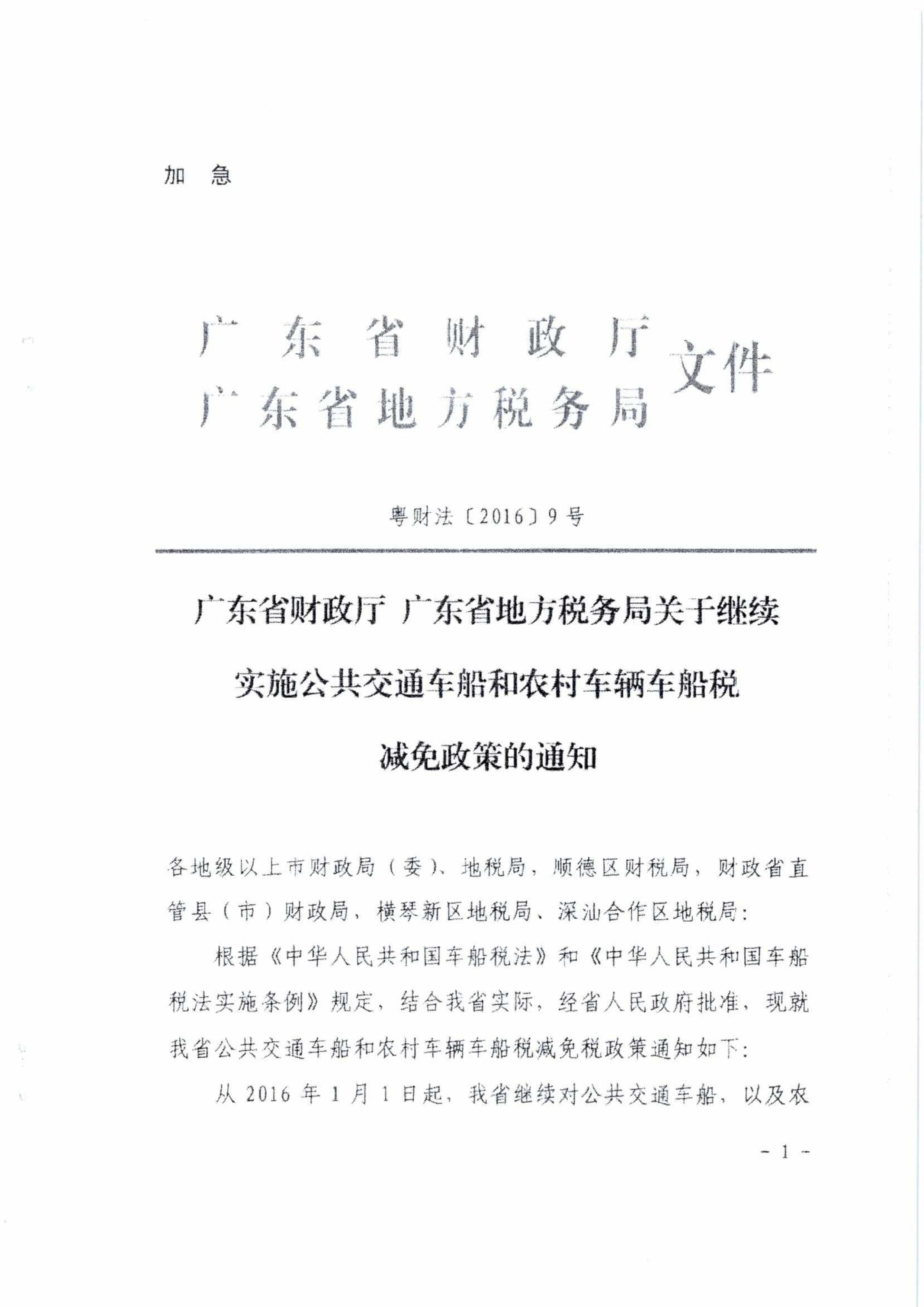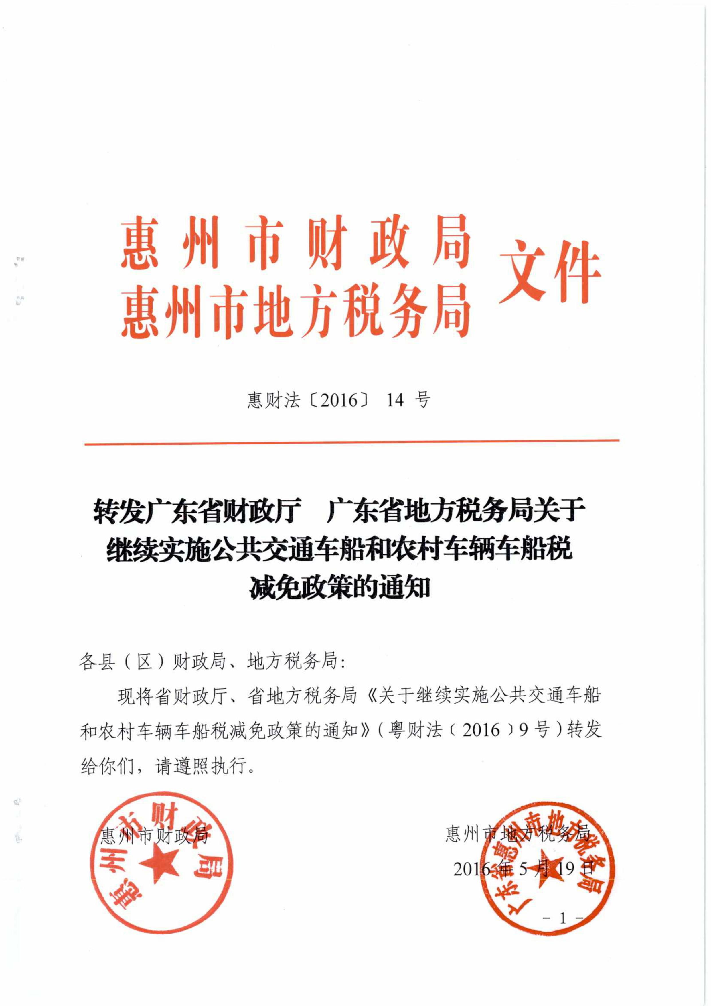 轉發廣東省財政廳 廣東省地方稅務局關于繼續實施公共交通車船和農村車輛車船稅減免政策的通知