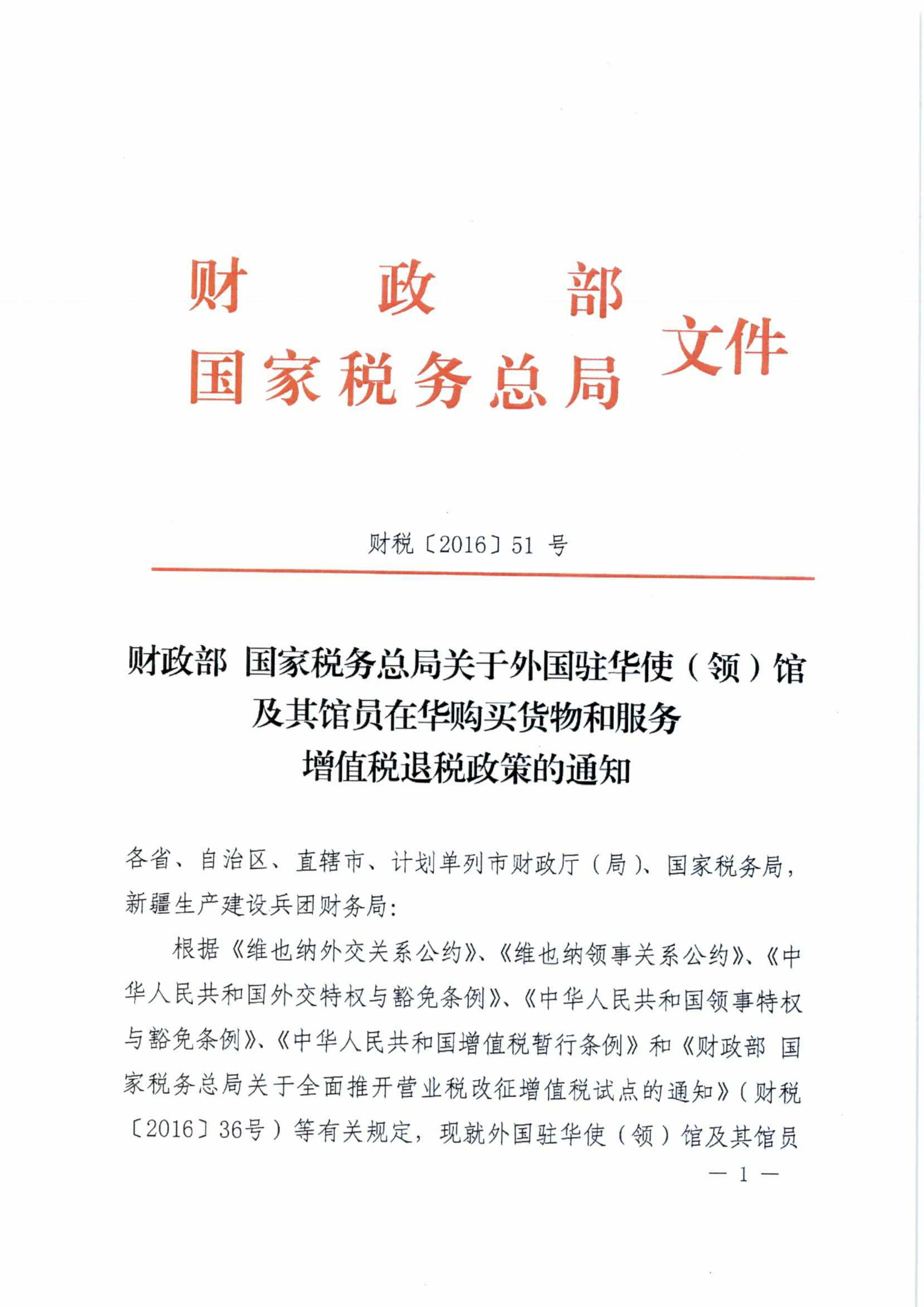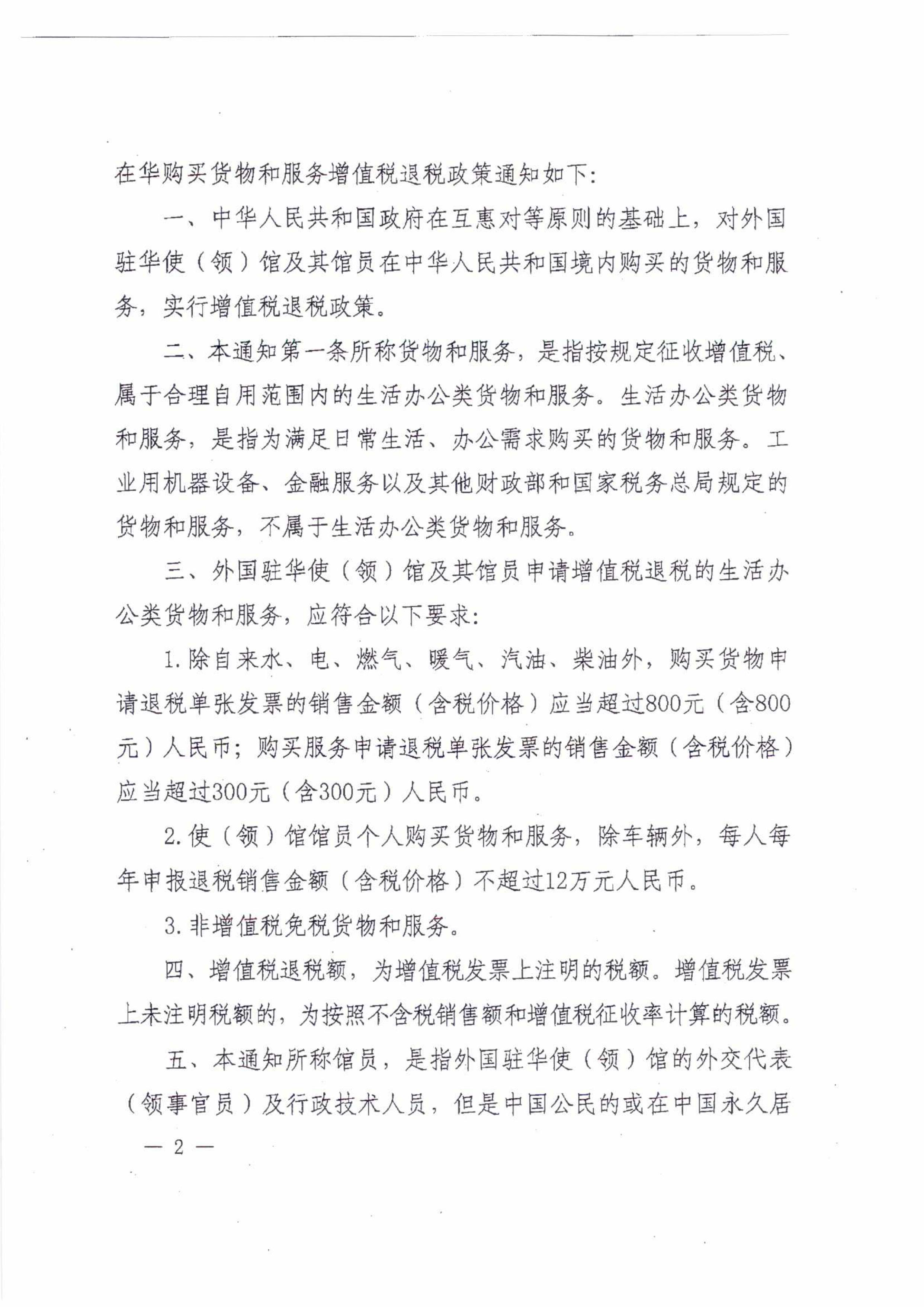 財政部 國家稅務(wù)總局關(guān)于外國駐華使(領(lǐng))館及其館員在華購買貨物和服務(wù)增值稅退稅政策的通知
