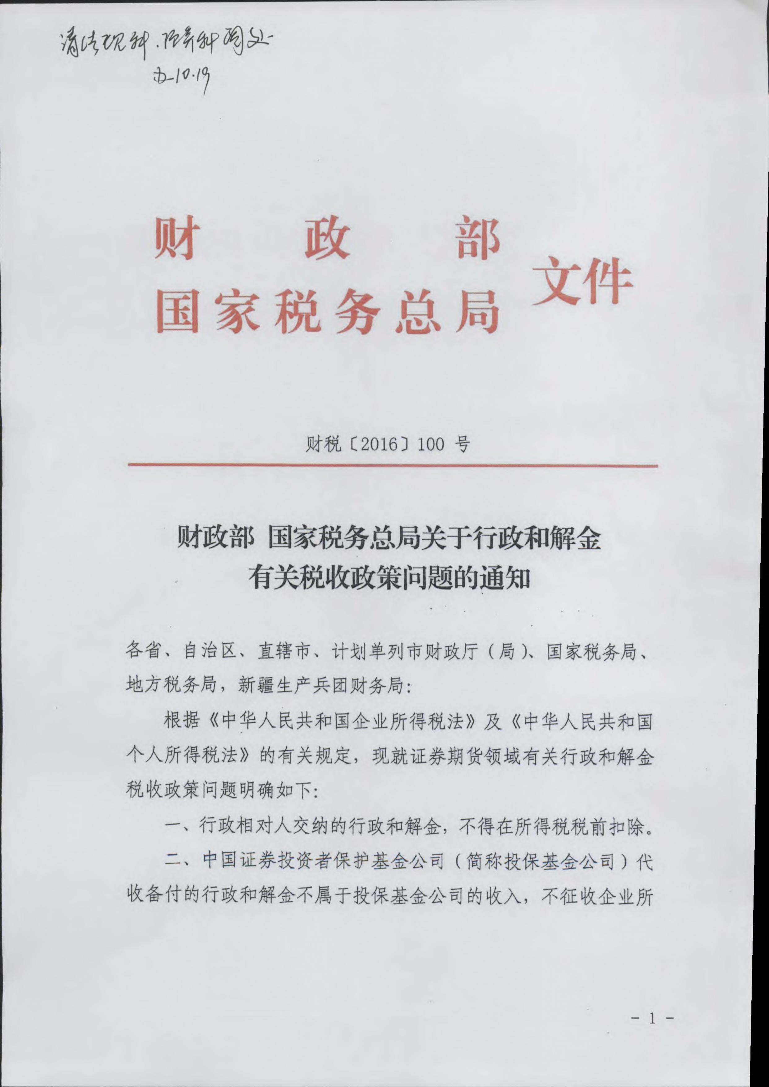 財政部 國家稅務總局關于行政和解金有關稅收政策問題的通知