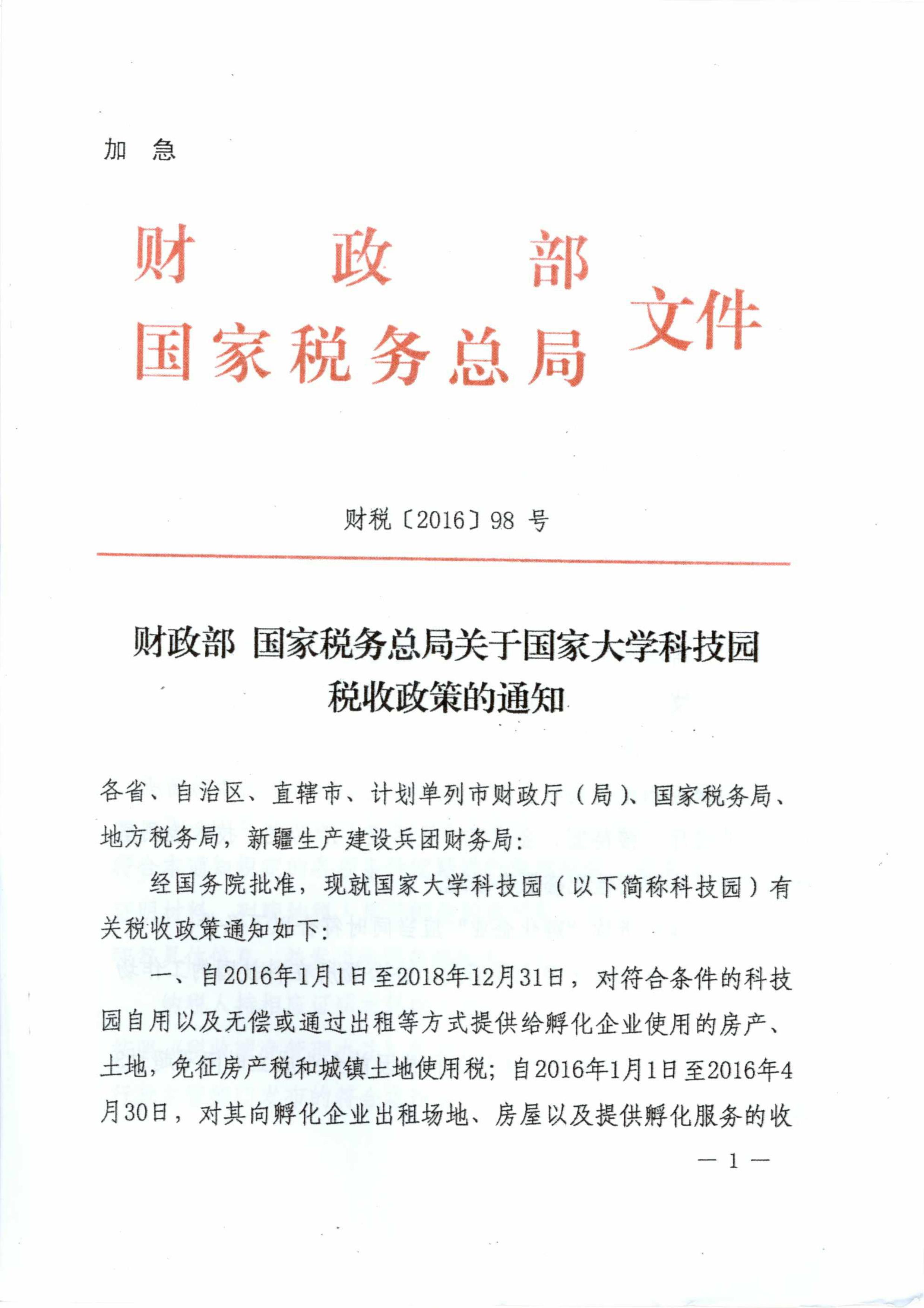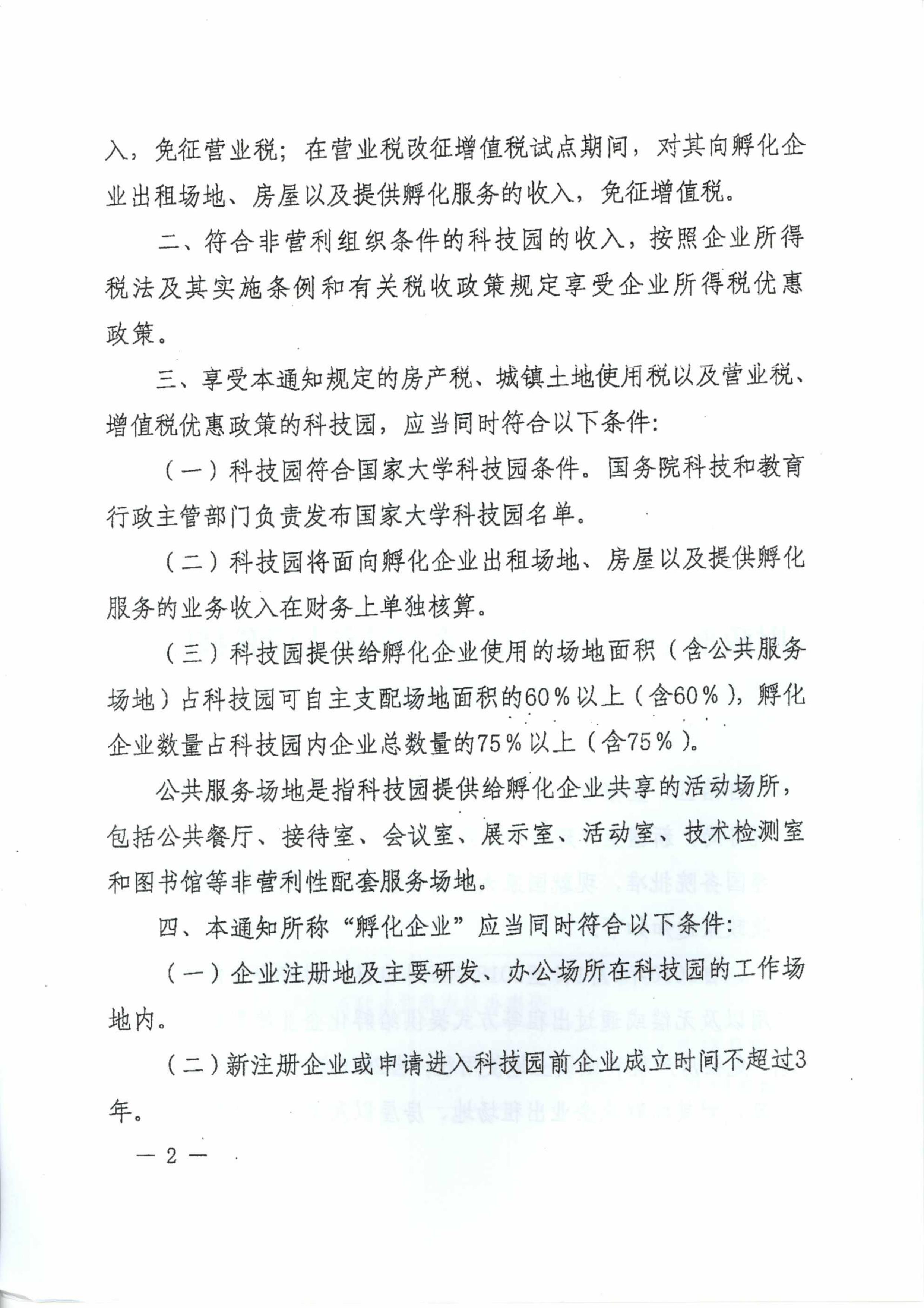 財政部 國家稅務總局關于國家大學科技園稅收政策的通知