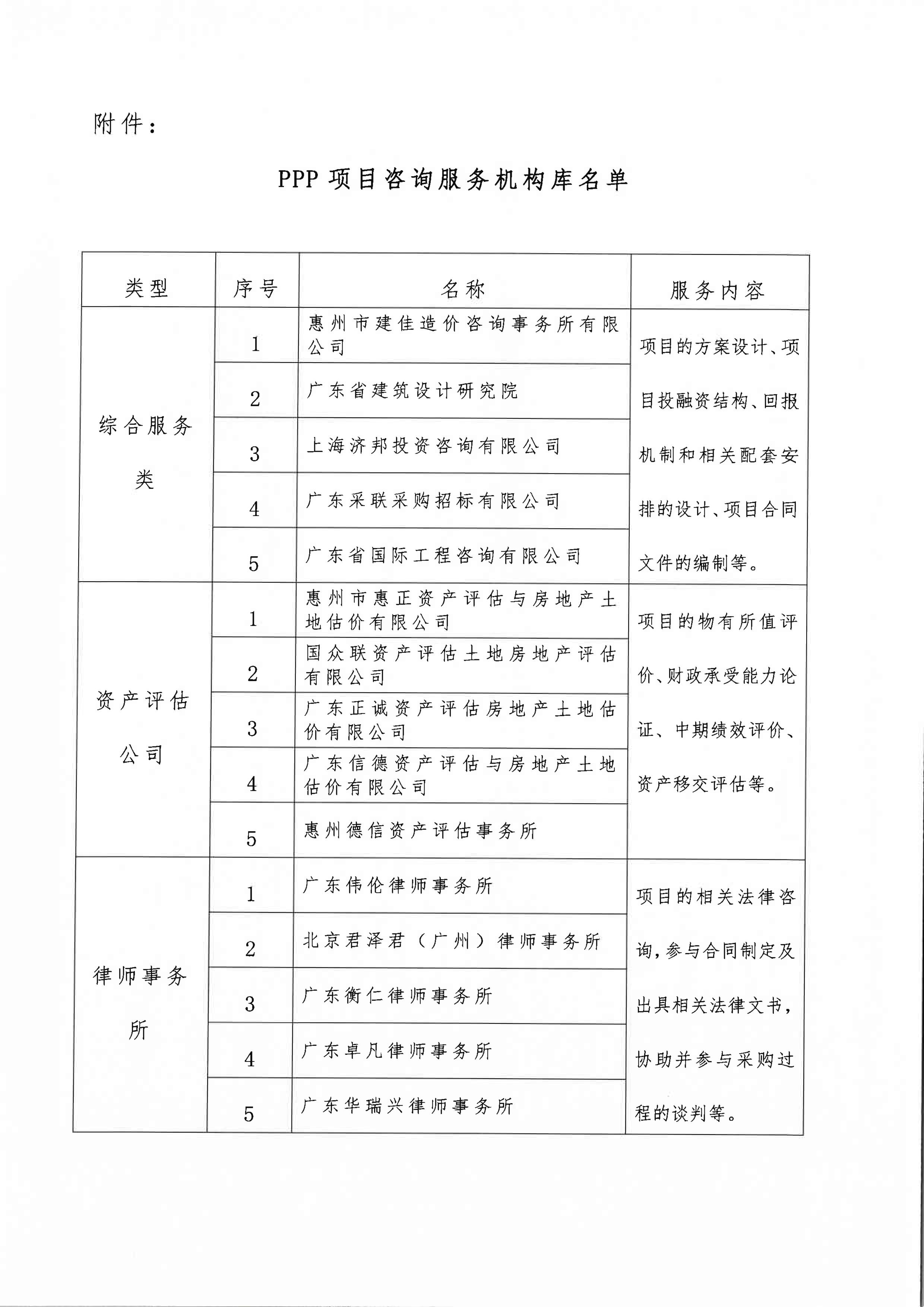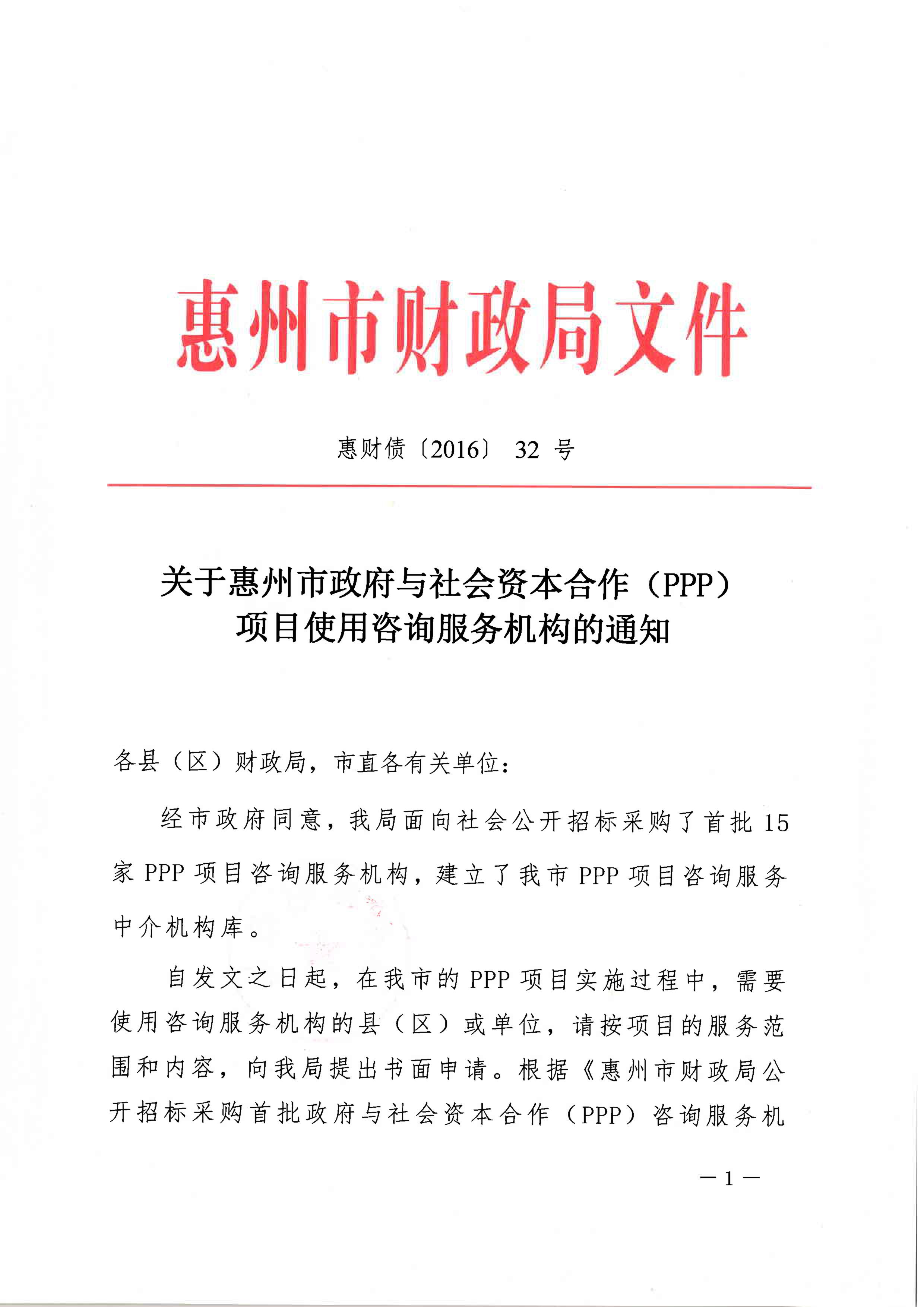 關(guān)于惠州市政府與社會(huì)資本合作(PPP)項(xiàng)目使用咨詢服務(wù)機(jī)構(gòu)的通知