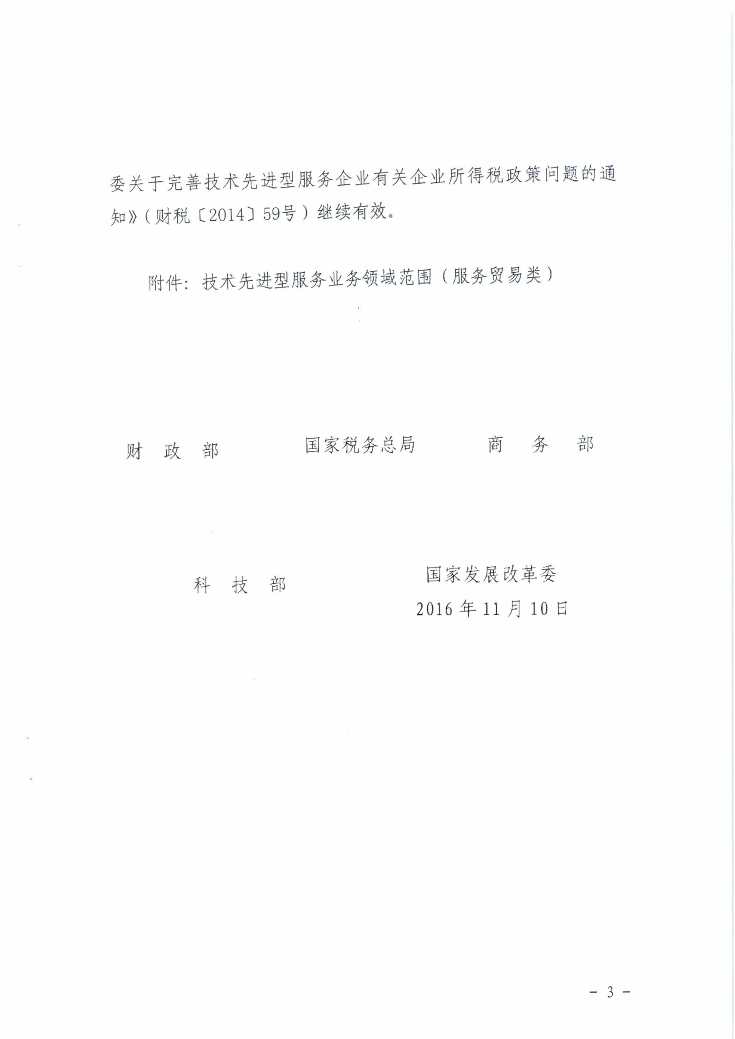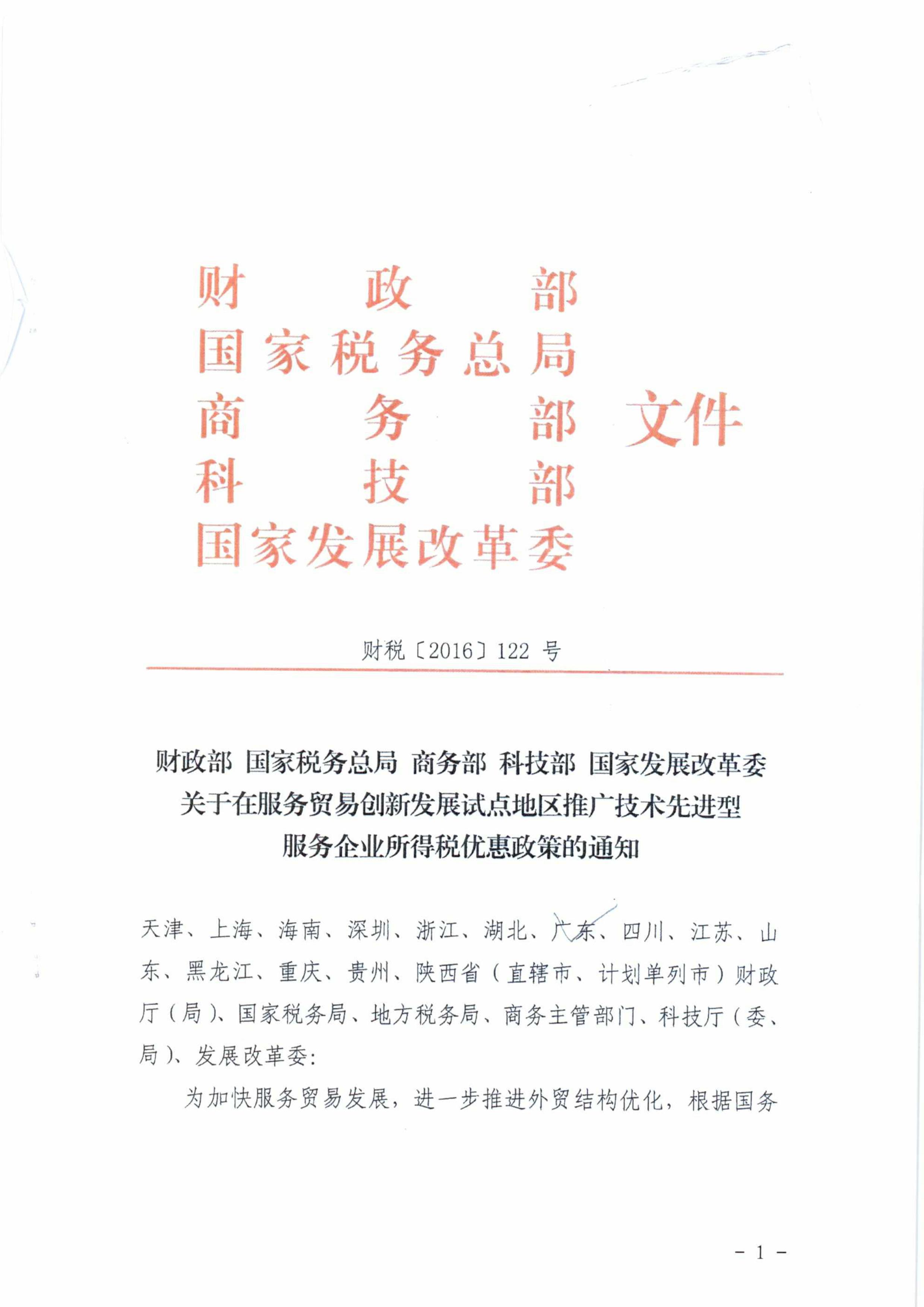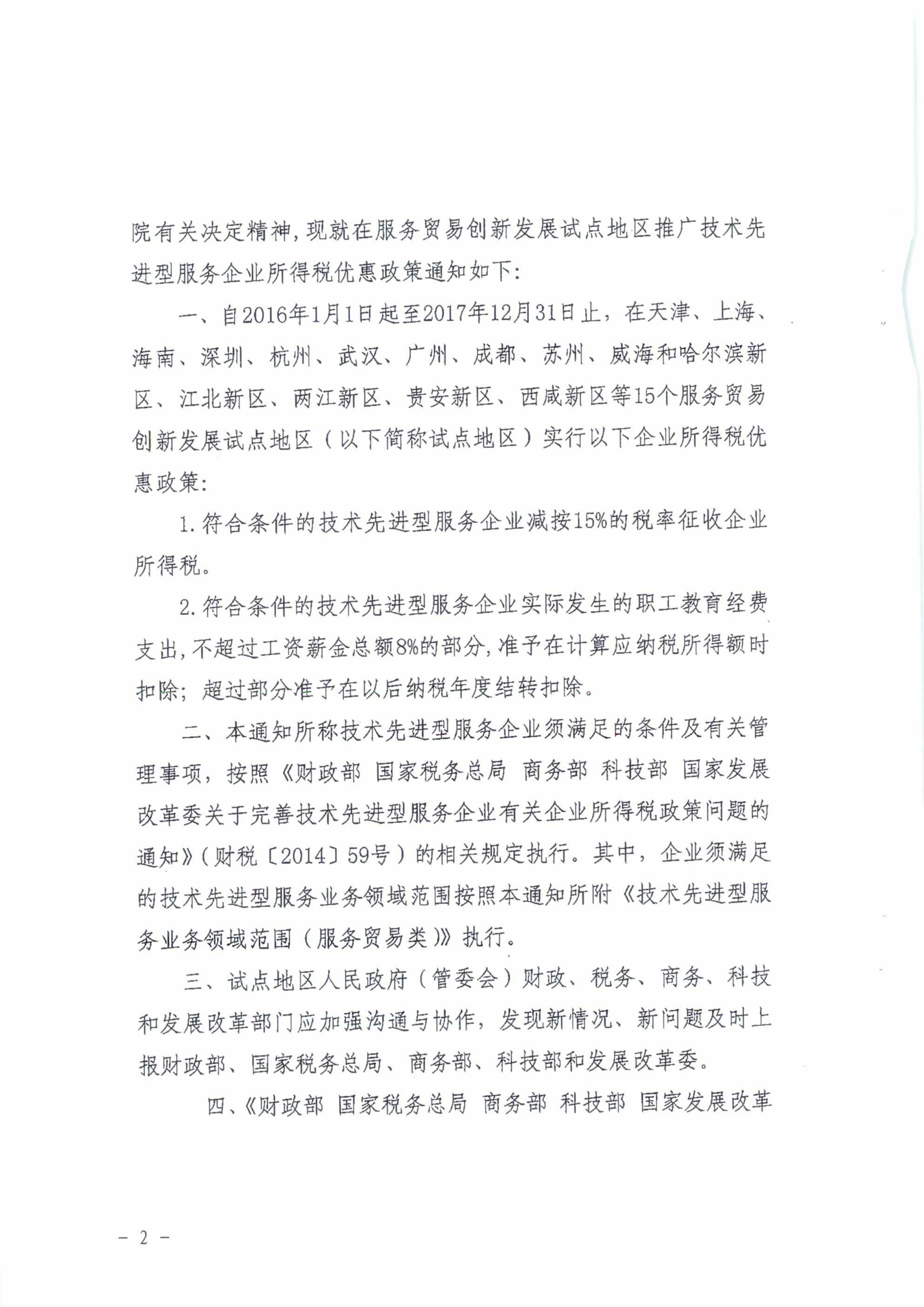 財政部 國家稅務總局 商務部 科技部 國家發展改革委關于在服務貿易創新發展試點地區推廣技術先進型服務企業所得稅優惠政策的通知