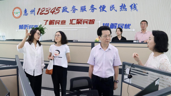 8月6日上午,市政務服務和數據管理局黨組成員、副局長黃志雄到惠州12345熱線調研指導工作,市政務服務和數據管理局四級調研員鐘錦成、政策法規科(熱線管理科)負責人陪同。