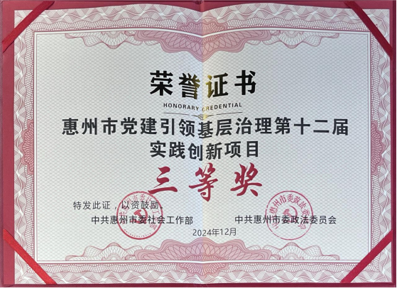 2024年12月10日,市政務和數據管理局《“惠云眼”市域無人機低空應用賦能社會治理創新示范》獲評惠州市黨建引領基層治理第十二屆實踐創新項目三等獎。我局將始終堅持把黨建引領作為主線,圍繞打造“一個堅強陣地”、構建“一個聯動平臺”做好“一項民生工程”、發揮“一個有力專業隊”等要求,充分應用數字化賦能作用,把黨的組織優勢有效轉化為基層治理效能。