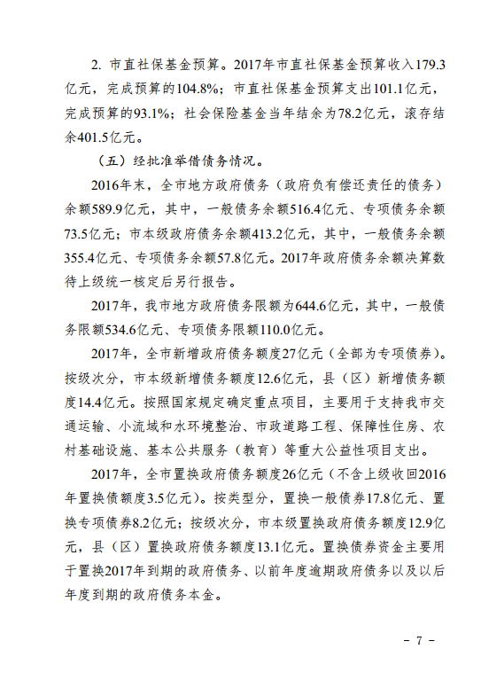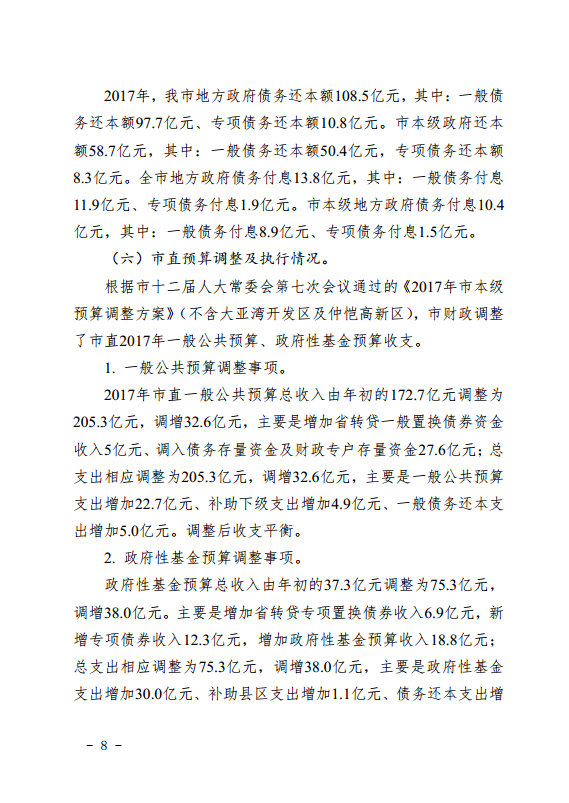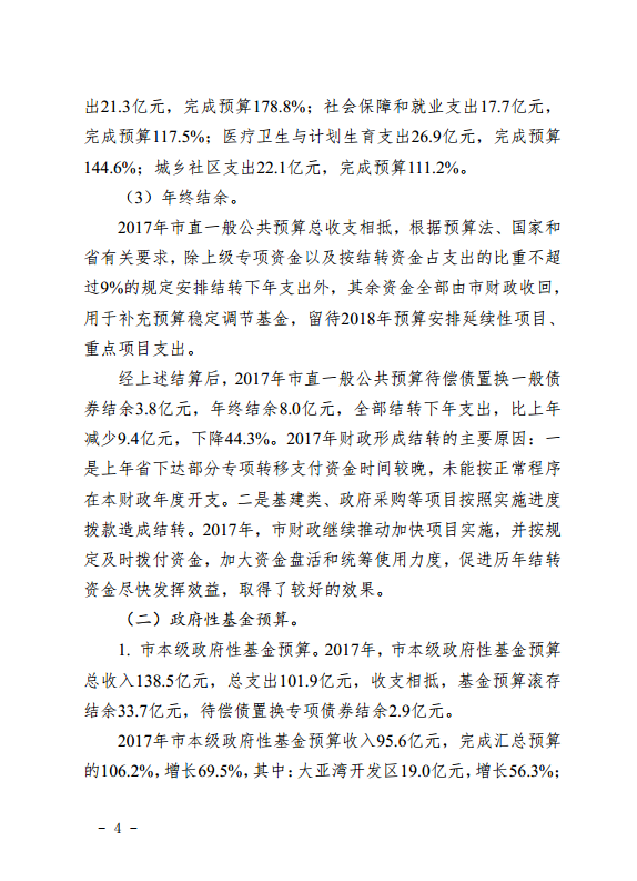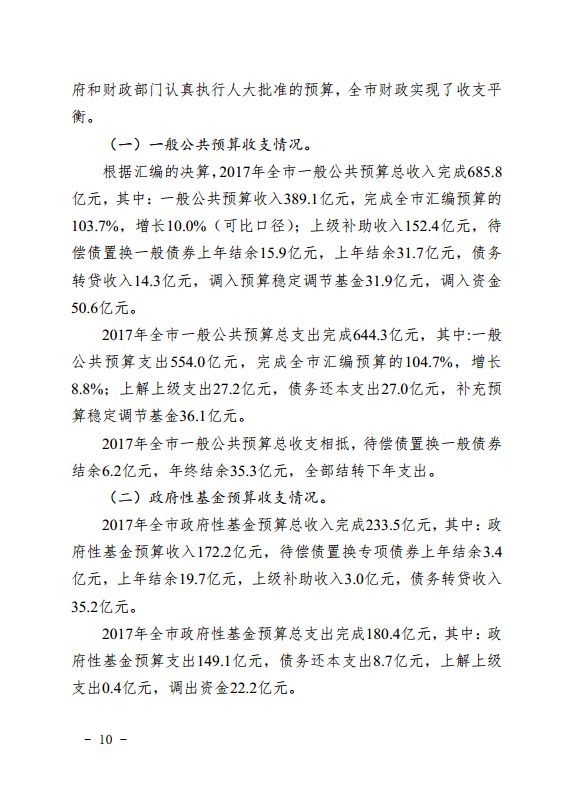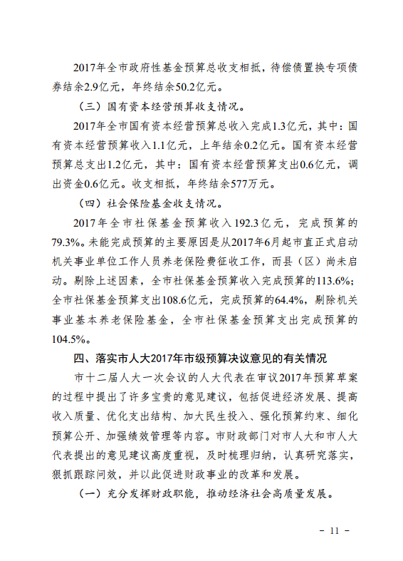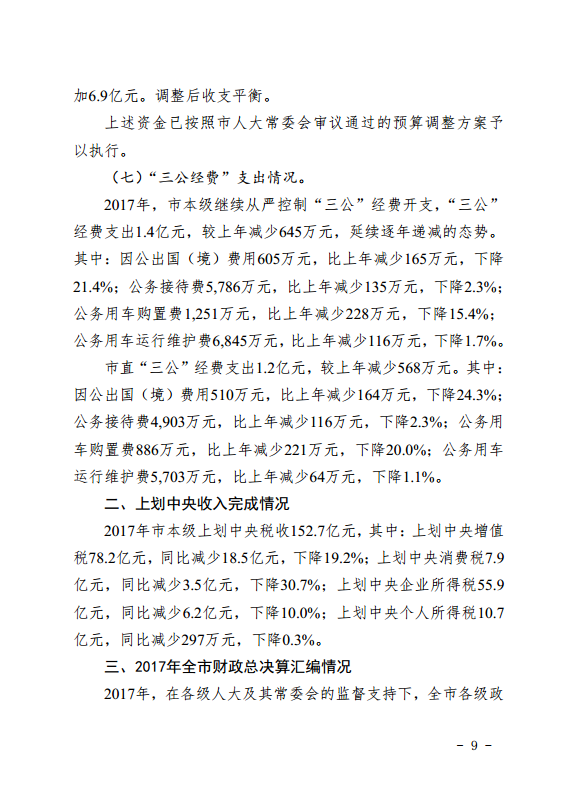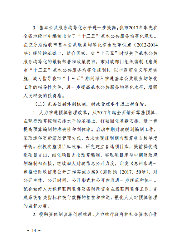 附件:惠州市人民政府關于惠州市2017年市本級決算草案的報告
