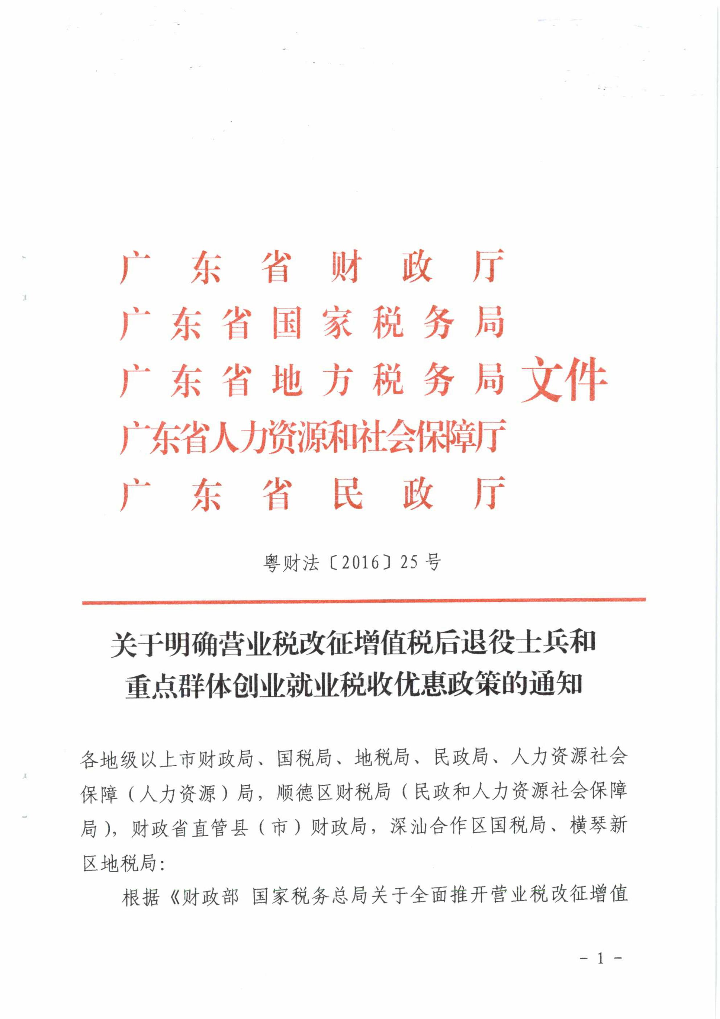 關于明確營業稅改征增值稅后退役士兵和重點群體創業就業稅收優惠政策的通知