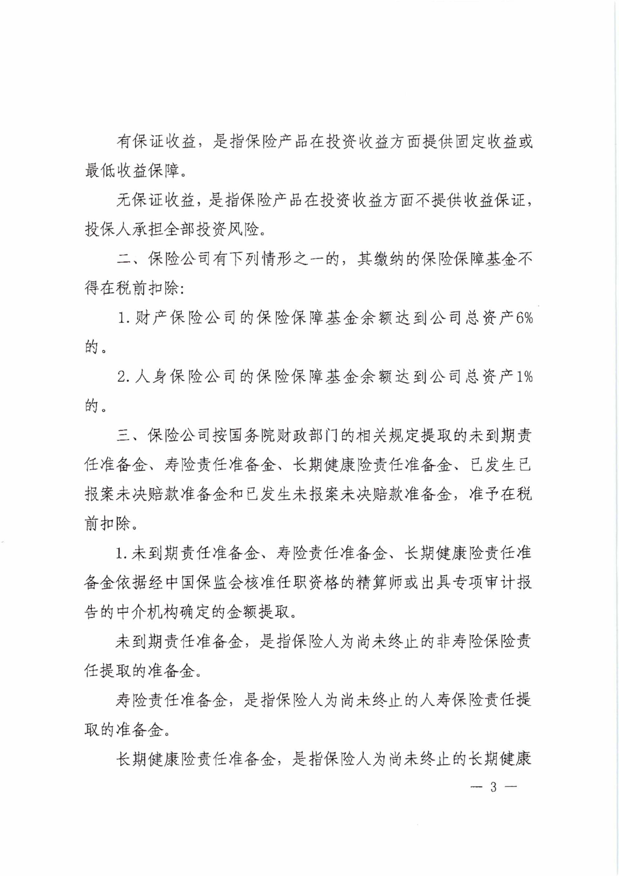 財政部 國家稅務總局關于保險公司準備金支出企業所得稅稅前扣除有關政策問題的通知