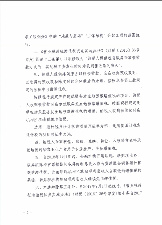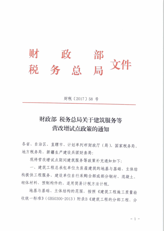 財政部 稅務總局關于建筑服務等營改增試點政策的通知