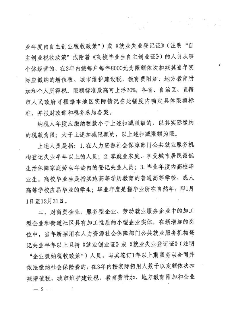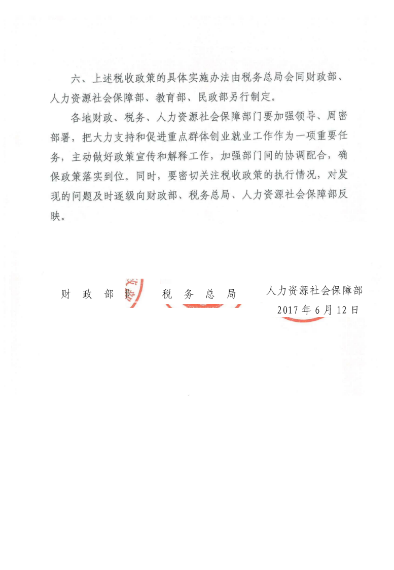 財(cái)政部 稅務(wù)總局 人力資源社會(huì)保障部關(guān)于繼續(xù)實(shí)施支持和促進(jìn)重點(diǎn)群體創(chuàng)業(yè)就業(yè)有關(guān)稅收政策的通知
