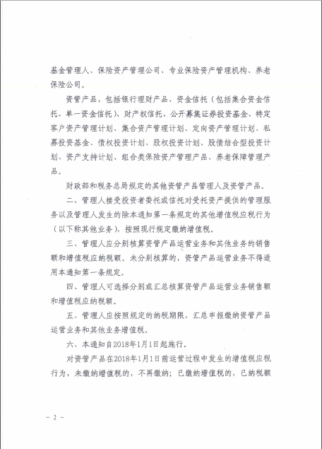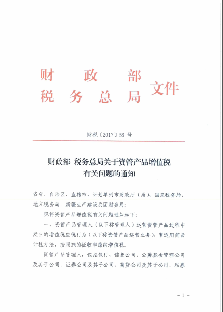 財政部 稅務總局關于資管產品增值稅有關問題的通知