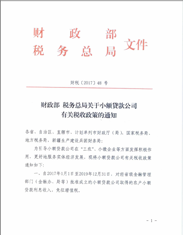 財政部 稅務總局關于小額貸款公司有關稅收政策的通知