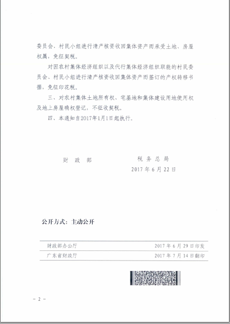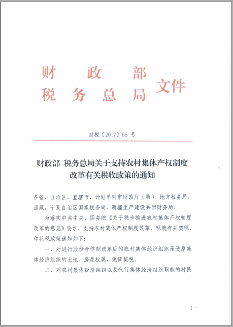 財政部 稅務總局關于支持農村集體產權制度改革有關稅收政策的通知