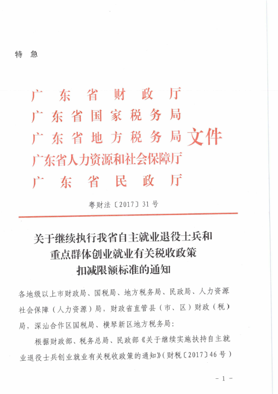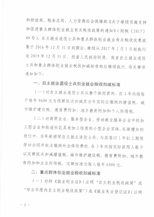 關于繼續執行我省自主就業退役士兵和重點群體創業就業有關稅收政策扣減限額標準的通知