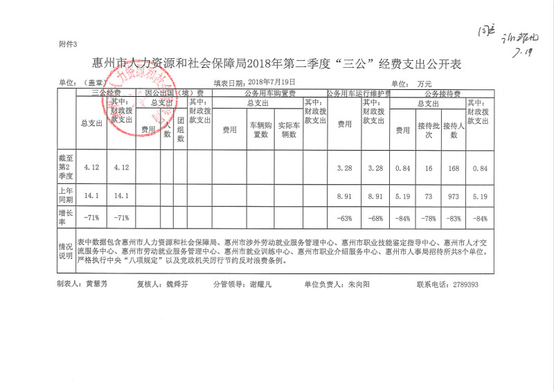 惠州市人力資源和社會(huì)保障局2018年第二季度“三公”經(jīng)費(fèi)支出公開(kāi)表