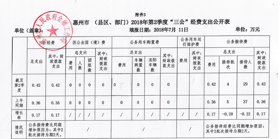 2018年第二季度惠州市金融局“三公經(jīng)費(fèi)”支出公開(kāi)表