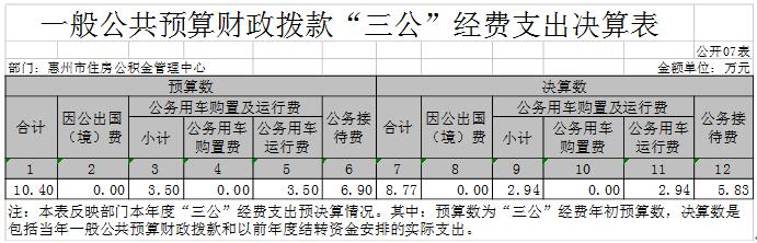 2017年惠州市住房公積金管理中心“三公”經費支出決算表