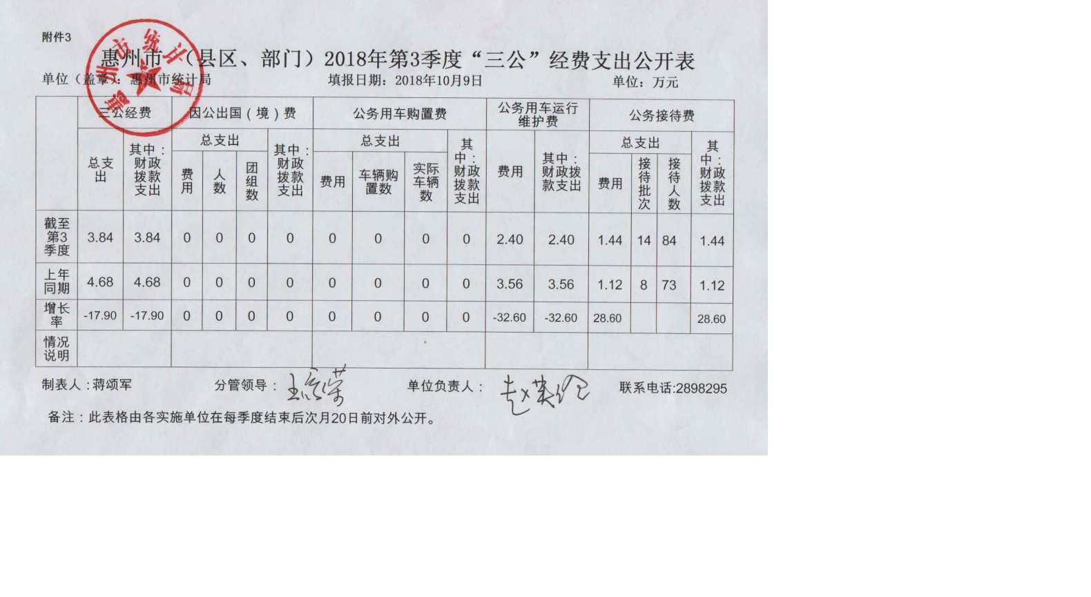 2018年第3季度“三公”經(jīng)費支出公開表