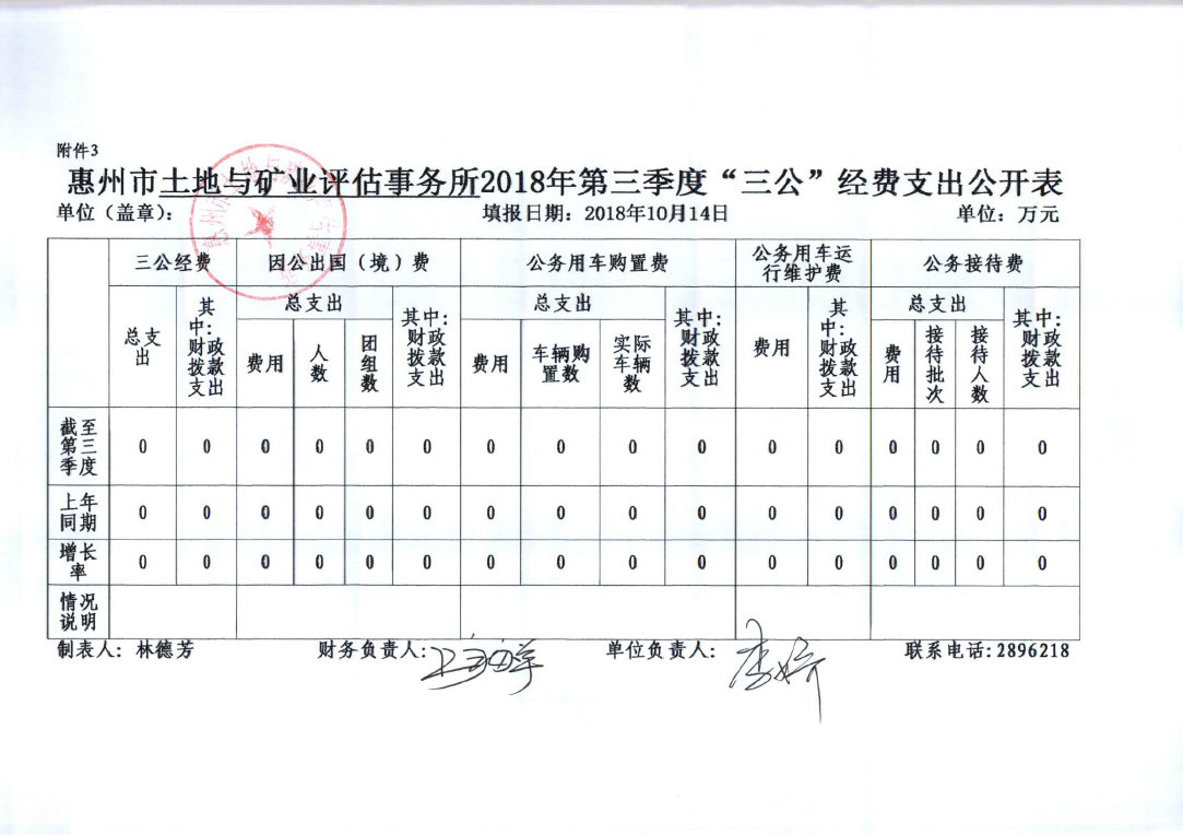 惠州市土地與礦業(yè)評(píng)估事務(wù)所第三季度“三公經(jīng)費(fèi)”