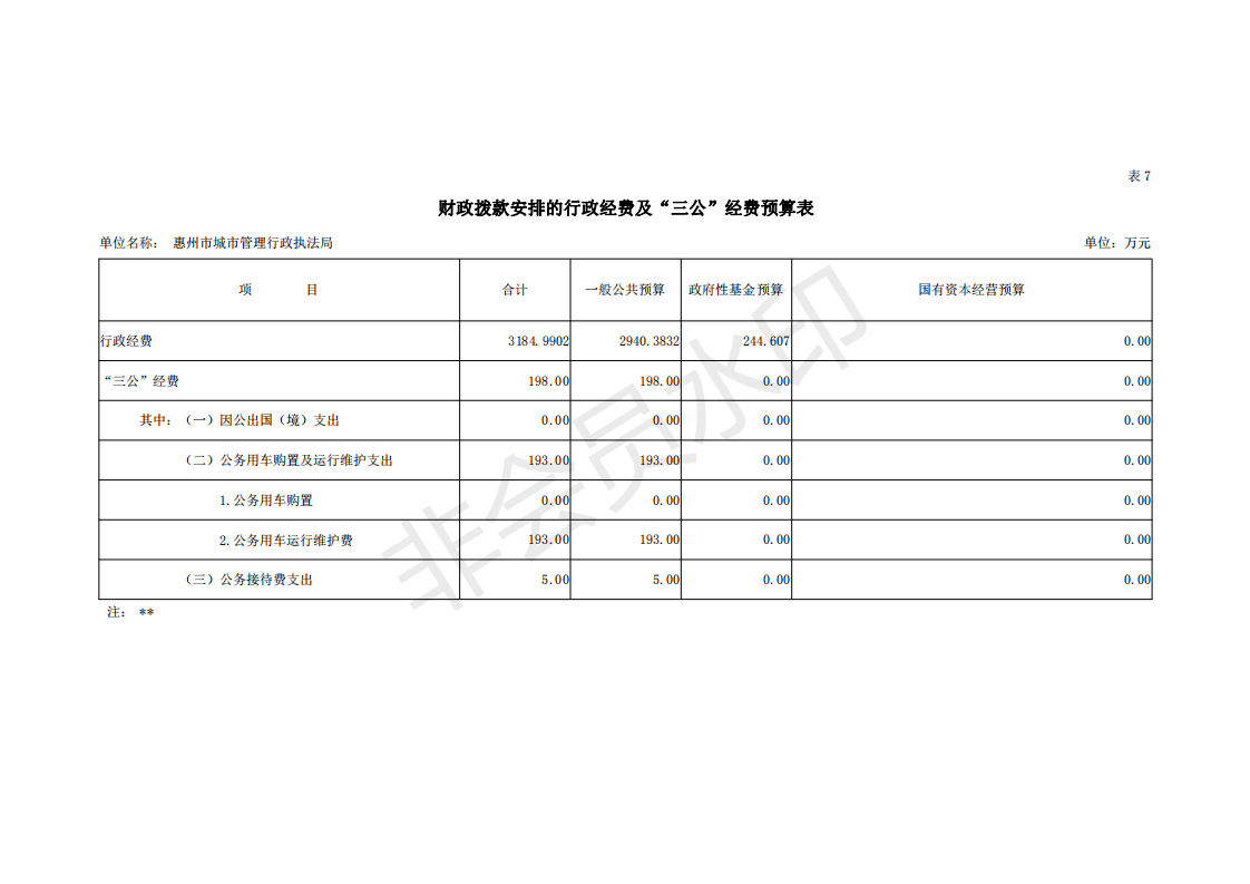 2019年市直部門預算表(一般公共預算安排的“三公”經費預算表)
