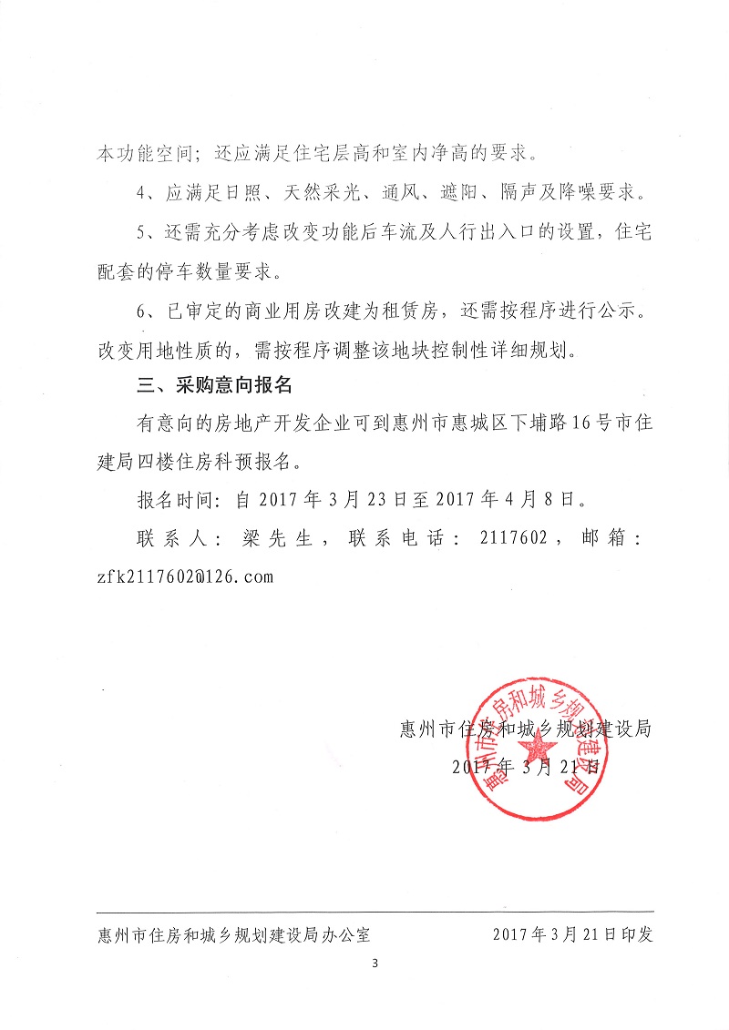 關于采購商品房或將在建、建成、庫存商業用房改建為公共租賃住房的公告 (惠市規建公示〔2017〕78號)
