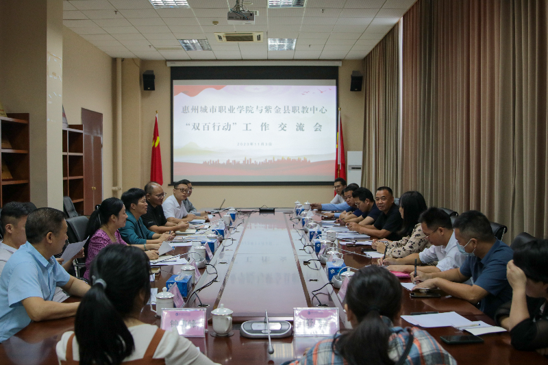 會上,吳林華介紹了惠州城市職業學院“雙百行動”工作進展情況和未來主要的規劃,陳俊杰介紹了紫金縣職業教育“雙百行動”工作情況。雙方團隊成員紛紛就如何開展好“雙百行動”結對幫扶工作發表建議和思路,希望通過這一千載難逢的機遇,讓紫金縣職業教育對接優質的高校資源,為紫金縣職業教育提供更多縣域發展的科技、人才和智力支撐,緊扣合作共建主題,發揮幫扶力量,真正實現資源共享、校地聯動、互惠互利、合作共贏,不斷深化縣校合作,持續擴大結對共建成果。