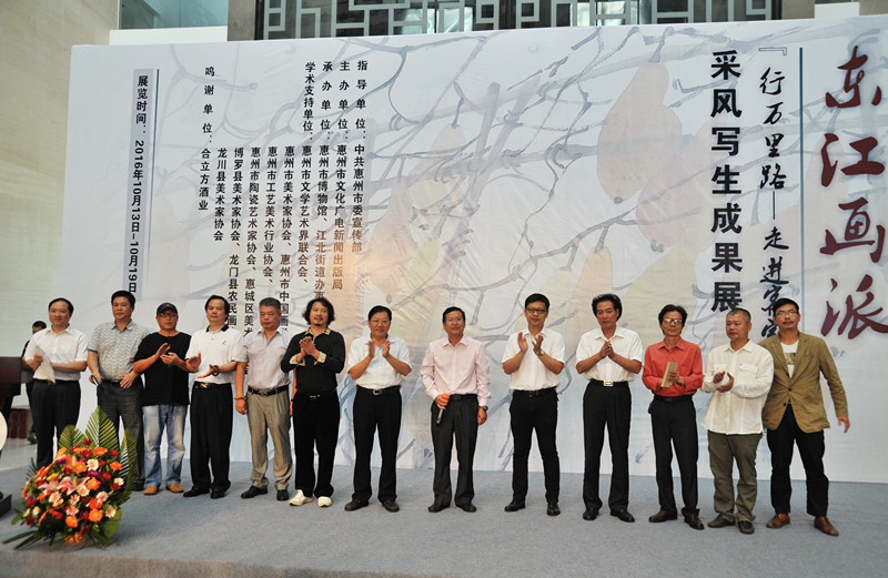 2016年10月13日上午,由中共惠州市委宣傳部指導、惠州市文化廣電新聞出版局主辦,惠州市博物館、客家中國畫院承辦的東江畫派“行萬里路——走進客家經典”采風寫生成果展在市博物館舉行了開幕式。市委宣傳部黃文新副部長、趙勁副部長,市文廣新局朱偉思局長,市文聯安想珍主席等領導出席了開幕式。