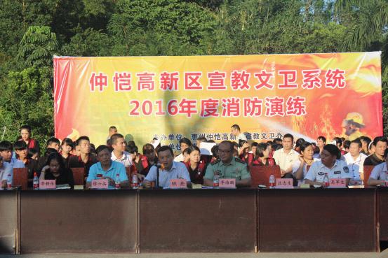 仲愷高新技術(shù)產(chǎn)業(yè)開發(fā)區(qū)區(qū)宣教文衛(wèi)辦黨組書記、常務(wù)副主任陳亮,仲愷消防大隊(duì)大隊(duì)長(zhǎng)李海鵬和各園區(qū)、鎮(zhèn)(街道)分管文化工作的領(lǐng)導(dǎo),區(qū)宣教文衛(wèi)辦相關(guān)科室分管安全生產(chǎn)工作負(fù)責(zé)人,各文化站站長(zhǎng),各學(xué)校、醫(yī)院代表,各互聯(lián)網(wǎng)上網(wǎng)服務(wù)營(yíng)業(yè)場(chǎng)所、歌舞娛樂場(chǎng)所、印刷出版行業(yè)經(jīng)營(yíng)單位、旅行社法人或分管消防安全生產(chǎn)工作負(fù)責(zé)人共計(jì)300多人參加了此次演練的觀摩。