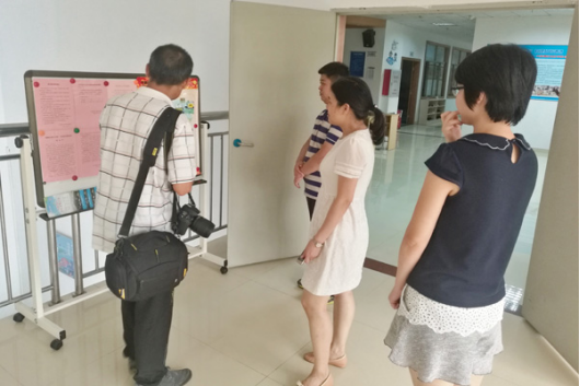 圖2:工作人員檢查社區(qū)學(xué)雷鋒志愿服務(wù)站點(diǎn)建設(shè)情況