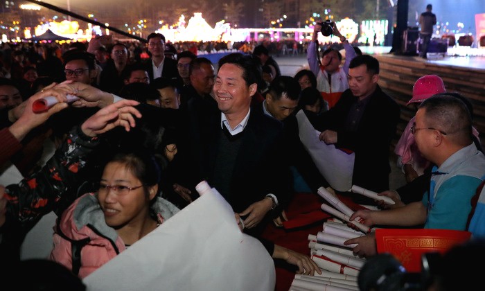 亮燈儀式上,互動舞獅節目《瑞獅爭艷》活躍了現場氣氛,鼓舞《盛世歡歌》振奮人心,特效舞蹈《熒光之城》美輪美奐。各位區領導與現場觀眾一起賞燈,并向大家派送春聯。據悉,今年的燈會共有燈組20組,包括熠熠生輝的“中國夢”、氣勢磅礴的“中國驕傲”,活潑靈動的“金犬迎春”,喜氣洋洋的“財源滾滾”等等,每組花燈主題突出、設計精美、色彩繽紛,極具觀賞性,市民們紛紛在燈海中拍照留念,有的通過掃碼觀看亮燈儀式直播,有的參與到燈謎大競猜、春聯大派送等活動當中,仲愷公園廣場洋溢在一片歡聲笑語中。整個燈會將持續2個多月,期間還將舉辦文藝晚會、全國地方戲曲展演、首屆民間藝術文化節、燈謎競猜、春聯派送等豐富多彩的文化惠民活動,打造一場場琳瑯滿目的精神文化盛宴。