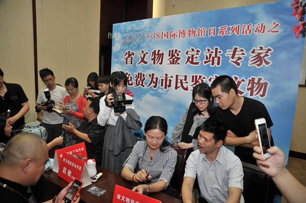 據(jù)統(tǒng)計(jì),當(dāng)日上午,省文物鑒定站三位專家共免費(fèi)為100余位市民鑒定文物200多件。