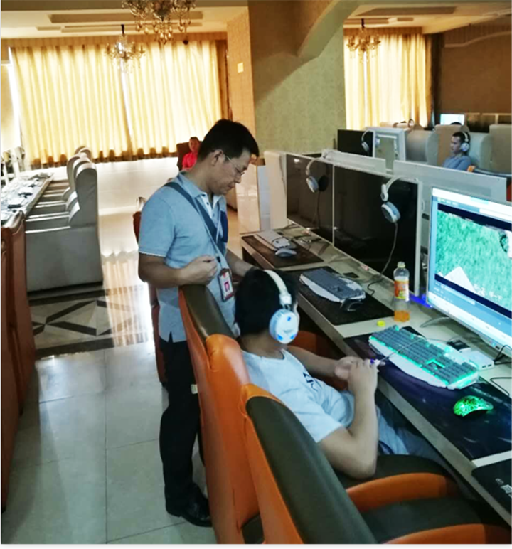圖1:大亞灣區文化執法人員檢查網吧上網人員身份證件