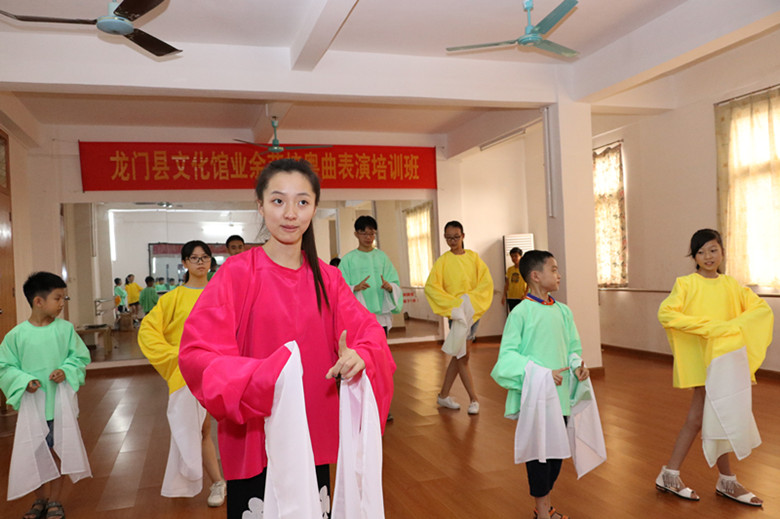為豐富青少年暑期文化藝術(shù)生活,促進(jìn)戲曲傳承發(fā)展,弘揚(yáng)中華優(yōu)秀傳統(tǒng)文化,龍門縣文化館于8月7日-11日面對青少年特別開設(shè)粵曲表演培訓(xùn)班,邀請中央戲曲學(xué)院導(dǎo)演系畢業(yè)的彭芷瀅(現(xiàn)上海戲劇學(xué)院導(dǎo)演系研究生專業(yè)在讀)任課。