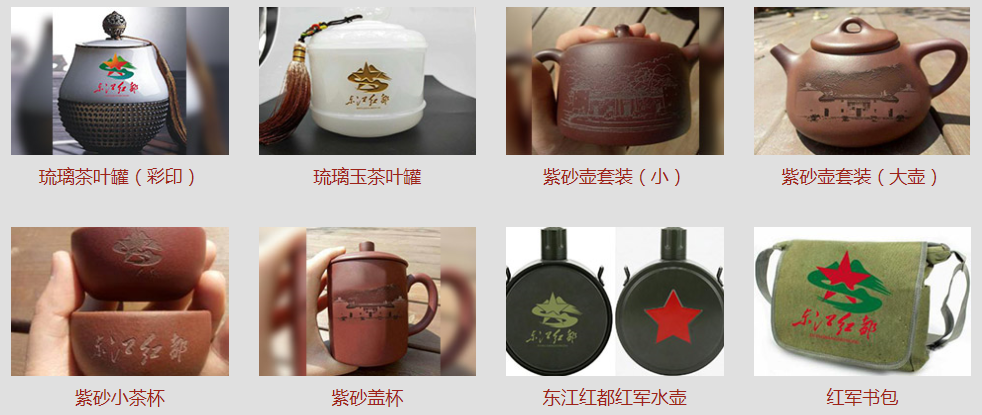 “東江紅都”系列產品,以“東江紅都”為主題的旅游商品。以產品為載體,通過廣告、活動和產品本身,撫今追昔,緬懷革命先烈,宣傳廣東省紅色旅游。