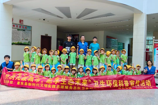 近日,由市生態環境局惠東分局志愿者組成的惠東縣新時代文明實踐志愿服務總隊衛生環保分隊在平山街道華僑城周邊開展“共創無廢城市,惠享生態未來”衛生環保科普宣傳活動,中航城幼兒園師生參與互動科普宣傳工作。