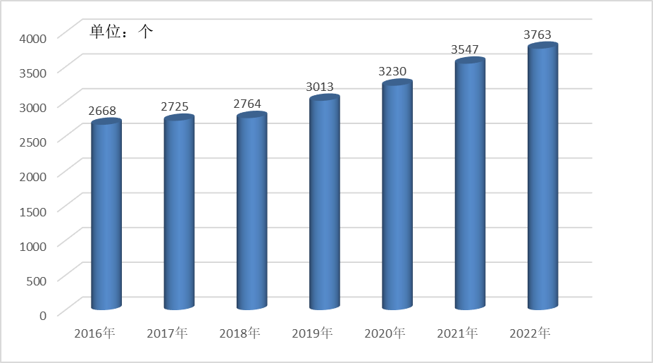 一、衛生資源 衛生資源總量穩步增長,人均占有量持續提升,人才隊伍建設不斷壯大。 (一)醫療衛生機構數。截至2022年底,全市醫療衛生機構3763家,其中:醫院85家、基層醫療衛生機構3636家、專業公共衛生機構35家,其他衛生機構7家。與上年相比,醫療衛生機構總量增加216家,增長6.09%,其中醫院增加1家,基層醫療機構增加210家,專業公共衛生機構增加2家。全市三甲醫療機構(含醫院、婦幼保健院)6家。 醫院:按機構類別分,全市綜合醫院54家、中醫醫院9家,??漆t院21家,護理院1家;按醫院等級分,全市三級醫院13家(其中三甲醫院4家)、二級醫院30家、一級醫院22家、未定級醫院20家;按經濟類型分,公立醫院30個、民營醫院55個。 基層醫療衛生機構:基層醫療機構中,衛生院68家、社區衛生服務機構81家、門診部414家、診所.衛生所.醫務室1797家、村衛生室1276家。與上年相比,基層醫療機構增加210家,其中衛生院、社區衛生服務減少6家,門診部增加23家,診所.衛生所.醫務室增加215家,村衛生室減少22家。 專業公共衛生機構:專業公共衛生機構中,全市婦幼保健機構6家、專科疾病防治機構9家、疾病預防控制機構8家、衛生監督機構5家,計劃生育技術服務機構1家、采供血機構1家、急救中心1家、健康教育機構4家。與上年相比,疾病預防控制機構增加2家,計劃生育技術服務機構、婦幼保健機構、??萍膊》乐螜C構、健康教育機構、衛生監督機構、采供血機構和急救中心保持穩定。  圖1