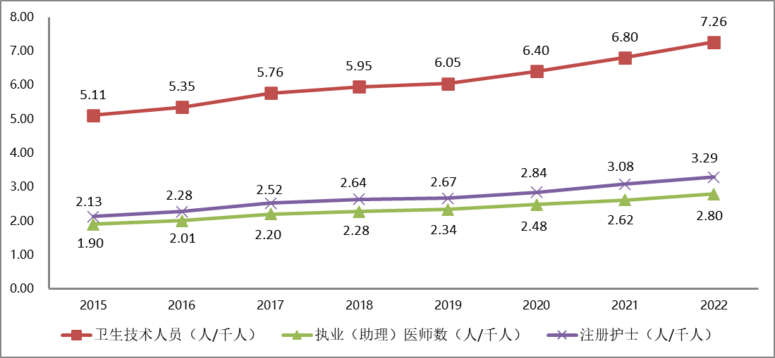 2015-2022年全市每千常住人口衛生人員數