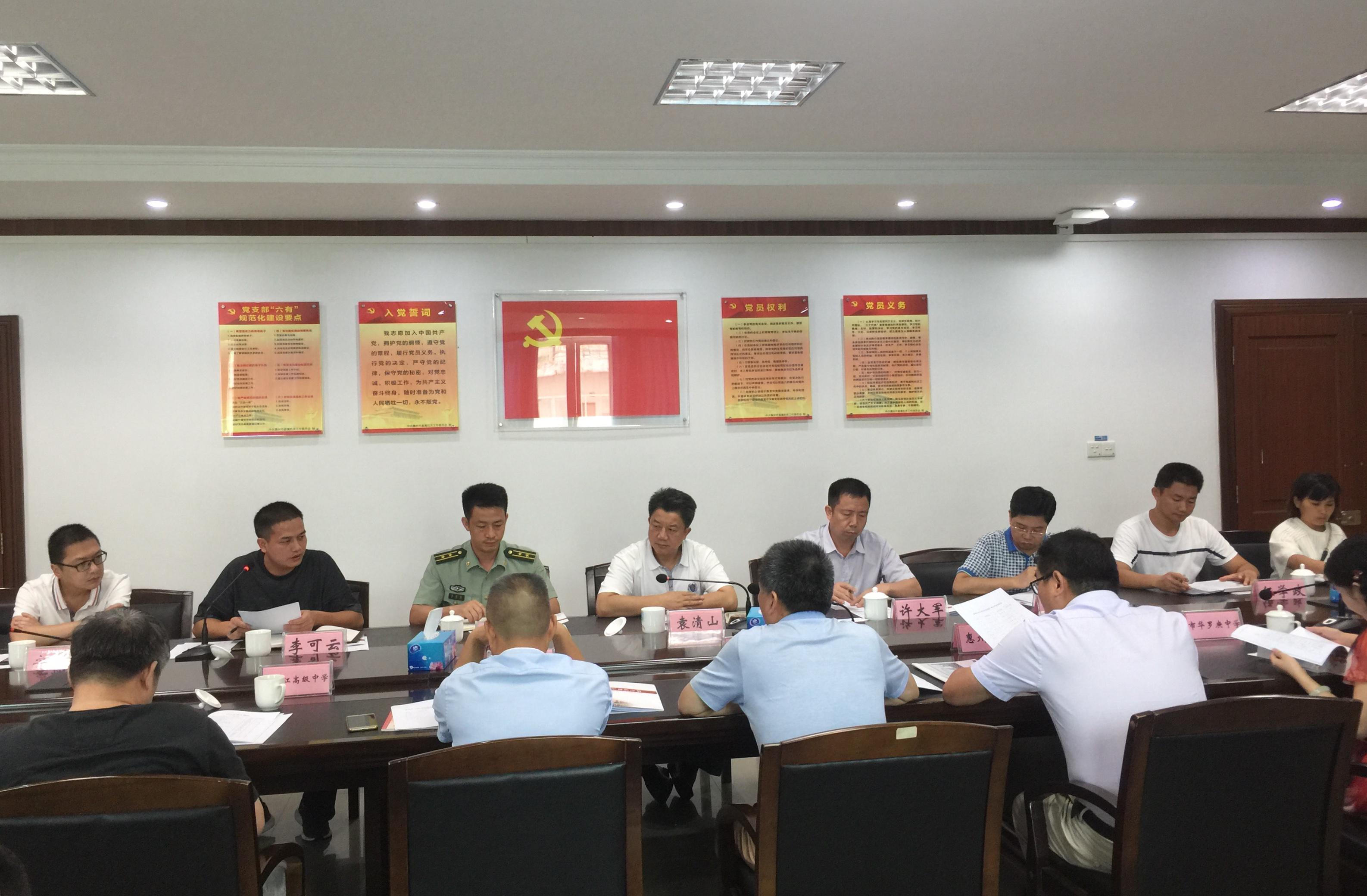 8月21日,2018學年度市直學校高一新生軍訓工作會議在市教育局四樓會議室召開,惠州市教育局黨組書記、局長袁清山、副調(diào)研員許大軍、惠州軍分區(qū)參謀屈國柱、惠州市國防教育訓練中心主任李可云及市直公辦高中學校分管副校長、德育主任、高一年級主任等參加會議。