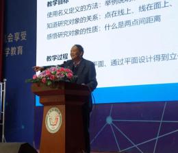 18日下午,北京市西城區教育研修學院小學數學教研員、特級教師劉克臣執教《運動的圓》。東北師范大學史寧中教授作《人是如何認識與表達空間的》報告。
