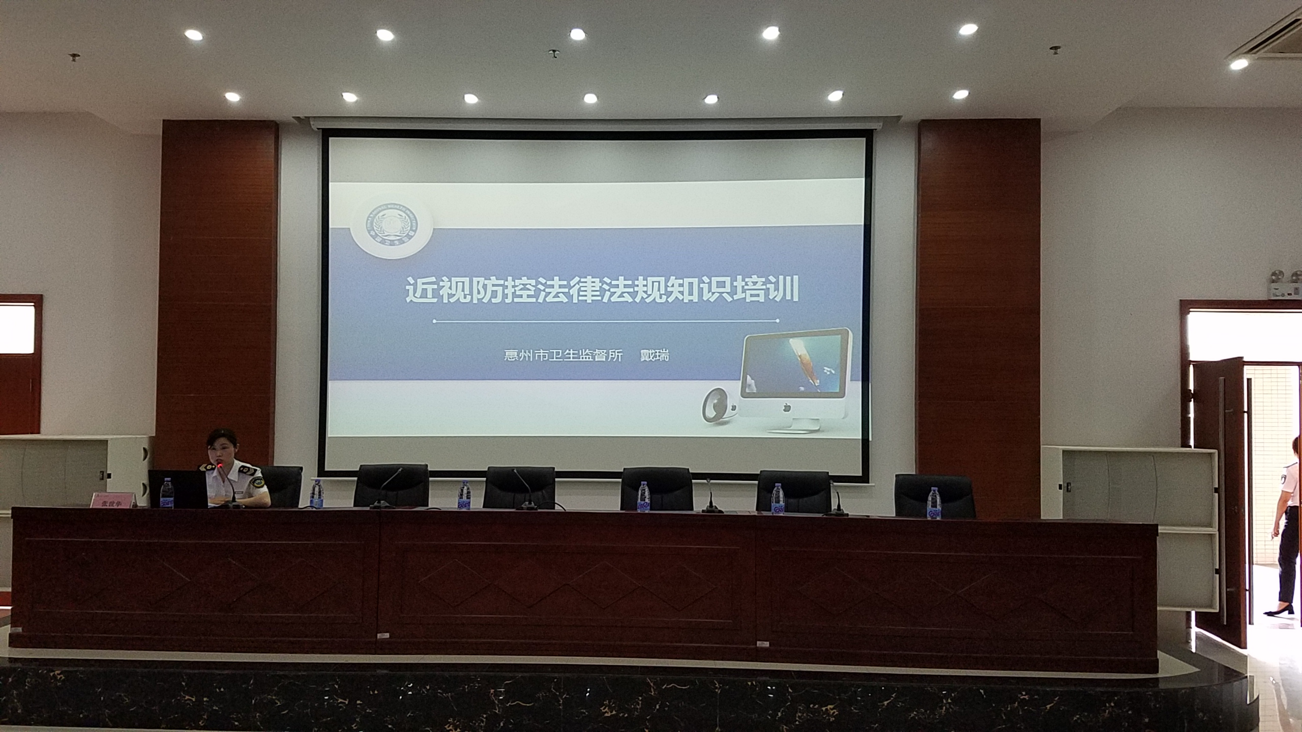 此次培訓專門邀請了惠州市衛生監督所學傳科負責人戴瑞和市第一人民醫院眼科主任張世華主任醫師,分別就近視防控相關法律法規和近視預防知識進行授課。