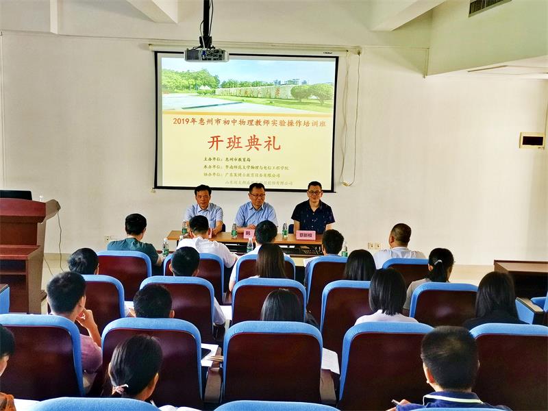 為保障初中學(xué)生實(shí)施實(shí)驗(yàn)操作考核工作順利進(jìn)行,進(jìn)一步豐富我市初中物理教師的實(shí)驗(yàn)知識(shí),提高技能操作水平,近日, 2019年惠州市初中物理實(shí)驗(yàn)操作培訓(xùn)班在華南師范大學(xué)物理與電信工程學(xué)院舉辦。來自各縣(區(qū))及市直學(xué)校的60位初中物理教研員、電教儀器站具體負(fù)責(zé)人和各學(xué)校初中物理學(xué)科科組長參加了培訓(xùn)。
