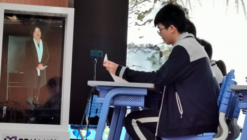 借助5G+全息投影的技術,遠在千里之外上海時代中學的沈小媛老師為現場惠州中學高一17班的學生上了一節詩歌鑒賞課,師生互動通過5G網絡傳輸的影像和語音絲毫沒有卡頓和延時。現場還展示了基于5G+AR/VR沉浸式教學,5G+AI學情分析等新的教學形式。技術的變革與應用讓與會人員大開眼界,吸引眾多師生駐足體驗,也帶來更高的思考。