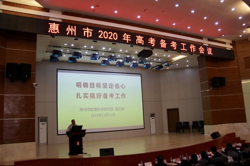 11月21日下午,惠州市2020屆高考備考工作會(huì)議在市一中高中部舉行,市教育局袁清山局長(zhǎng)出席會(huì)議并講話,鄧凡用副局長(zhǎng)主持會(huì)議,市教科院院長(zhǎng)易正新及部分教研員,各縣(區(qū))分管教學(xué)教研副局長(zhǎng)和教研室主任,全市所有高中校長(zhǎng)、高三分管領(lǐng)導(dǎo)和高三年級(jí)長(zhǎng)共150余人參加會(huì)議。