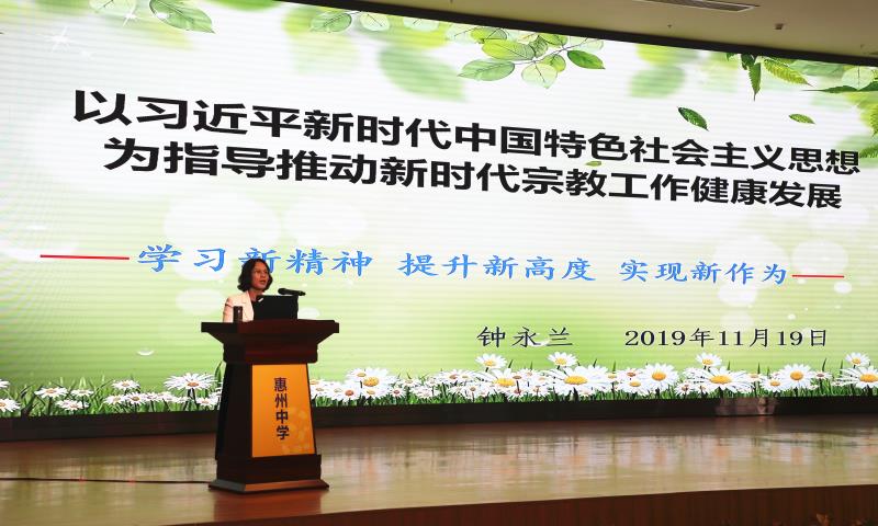 市委統戰部鐘永蘭副部長宣講了黨的宗教政策法規和習近平總書記關于宗教工作的重要論述精神,市委黨校陳春梧副校長以《開創“中國之治”新時代》為題,從四個方面對黨的十九屆四中全會精神進行了宣講。