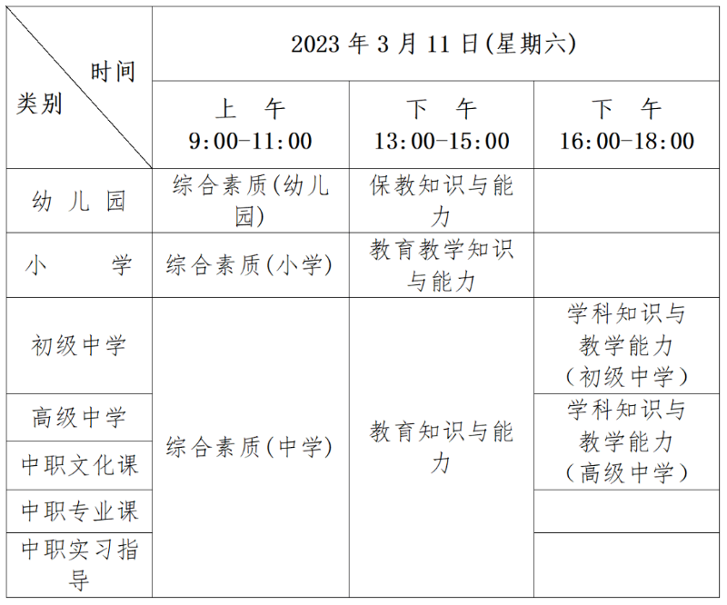 根據省教育考試院關于《廣東省2023年上半年中小學教師資格考試筆試通告》精神,2023年上半年全國中小學教師資格考試筆試定于2023年3月11日舉行,我省考生網上報名將于1月13日至16日進行。結我市實際情況,現將有關報名安排事項告知如下: 一、考試時間及考試科目