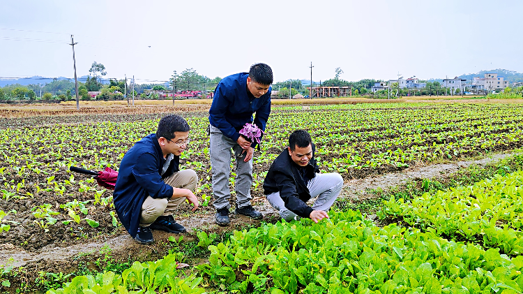 為了解冬種包心芥菜示范種植情況,11月7日,惠州市農(nóng)業(yè)科學(xué)研究所(以下簡(jiǎn)稱“市農(nóng)科所”)農(nóng)村科技特派員團(tuán)隊(duì)與駐鎮(zhèn)工作隊(duì)一行7人,前往龍門縣龍江鎮(zhèn)羅洞村、龍江村和石前村的田間地頭,指導(dǎo)芥菜病蟲害防治技術(shù)。