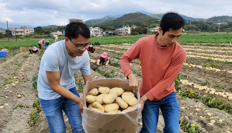 2月10日,在惠東縣稔山鎮五配村百畝連片冬種馬鈴薯示范基地里熱鬧不已,農戶們分工協作,揭膜、分級揀果、裝箱、打包、稱重、上車,技術專家和種植戶一同見證測產結果。